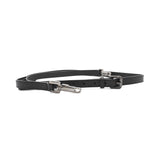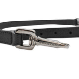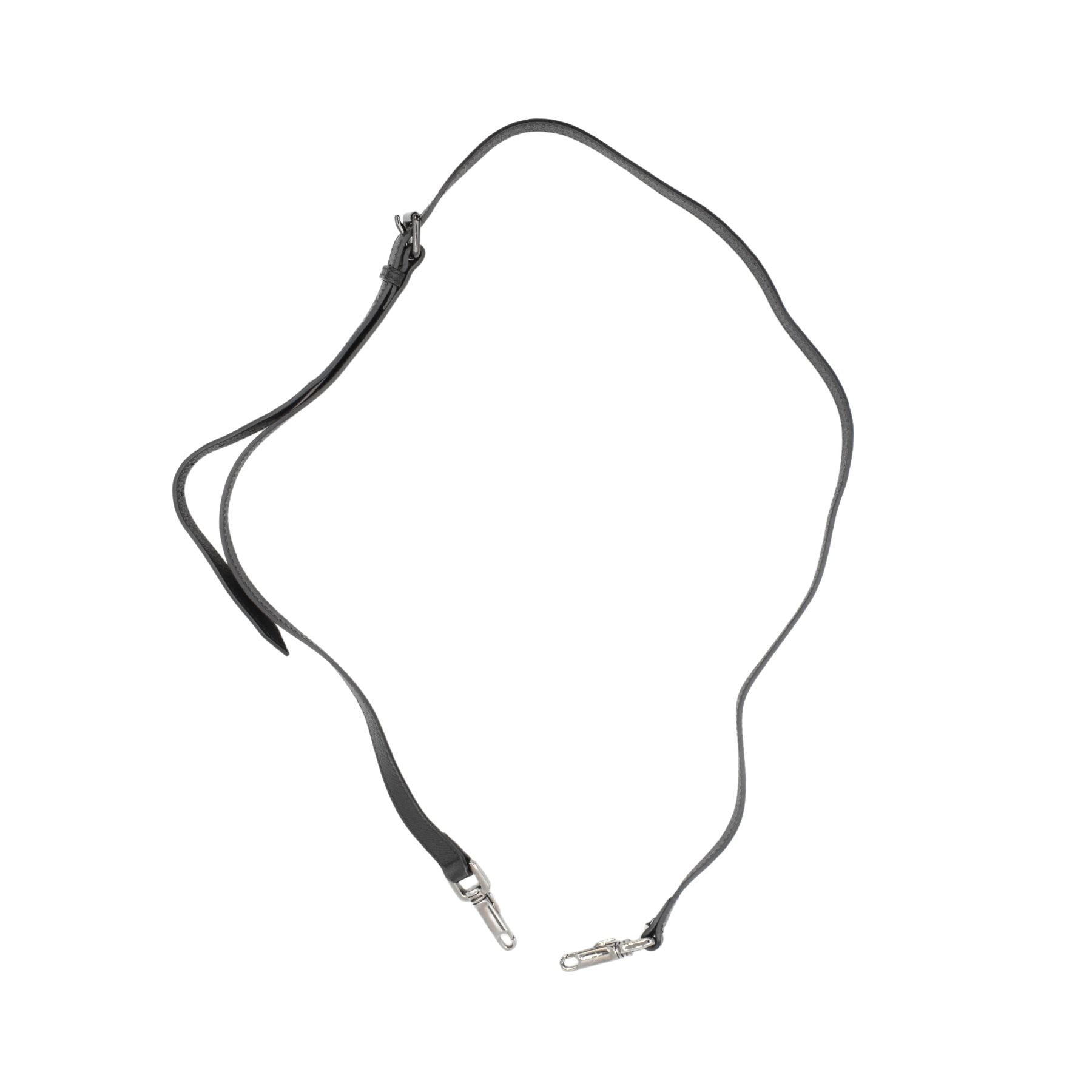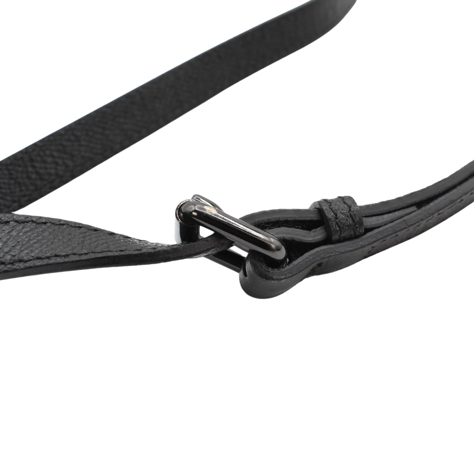 Burberry bag strap in black textured leather with adjustable gunmetal hardware buckle and lobster clasp ends.