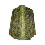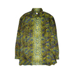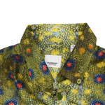 Burberry button-down shirt in green silk with an all-over multicolour reptillian print, large front pockets, and green buttons. From the S/S21 runway collection.