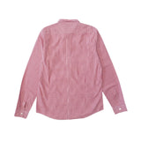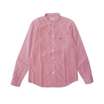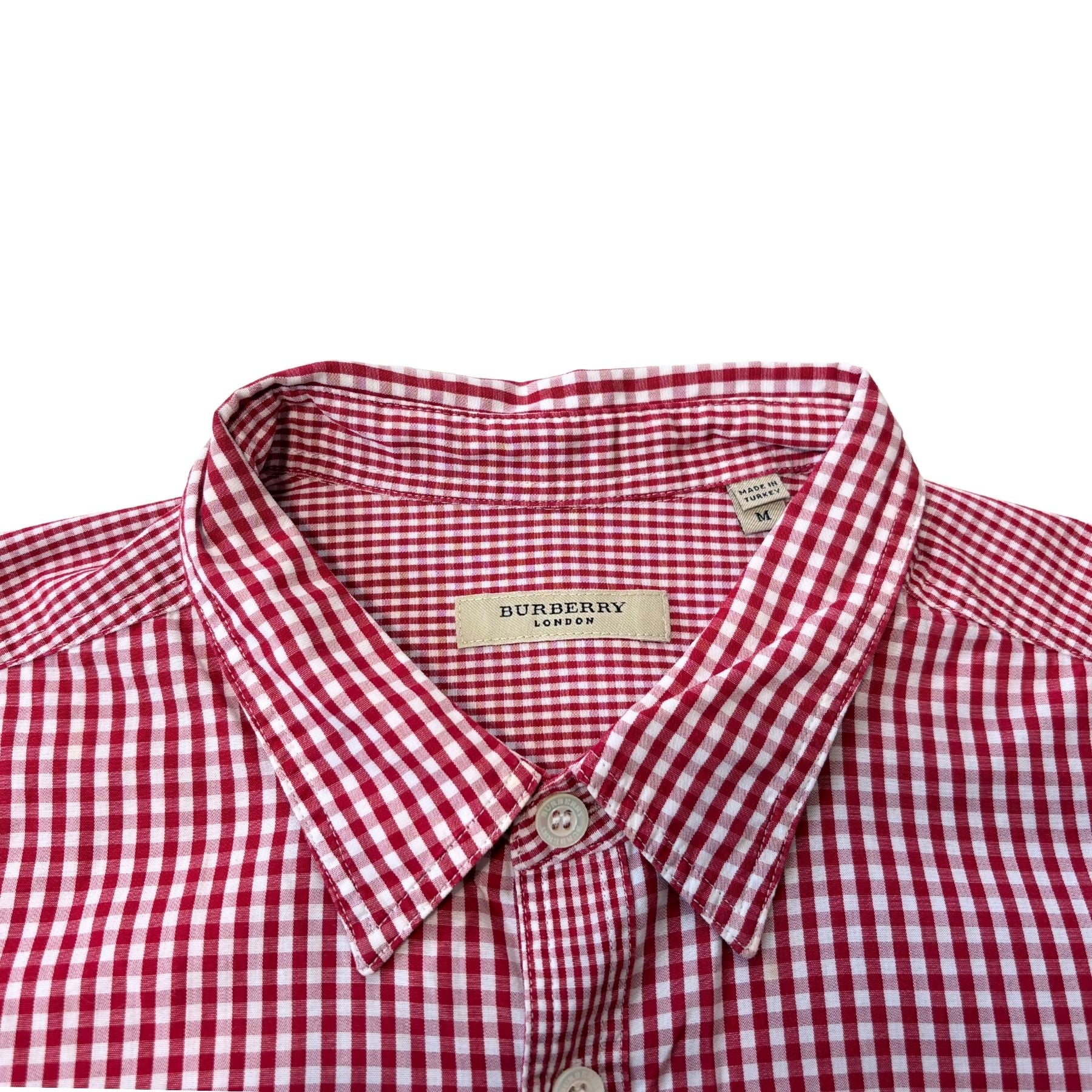 Burberry long-sleeve button-down shirt in red and white check with a red embroidered logo on the chest pocket.