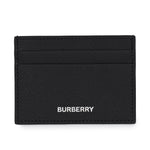 Burberry card holder wallet in black textured leather with a silver embossed logo.