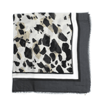 Burberry large square scarf in greyscale leopard print with a white, black and grey border.