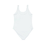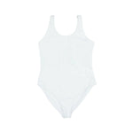 Burberry one-piece bathing suit in white nylon with white tonal logo on the front and back. Features a high-leg cut and scoop neck and back.