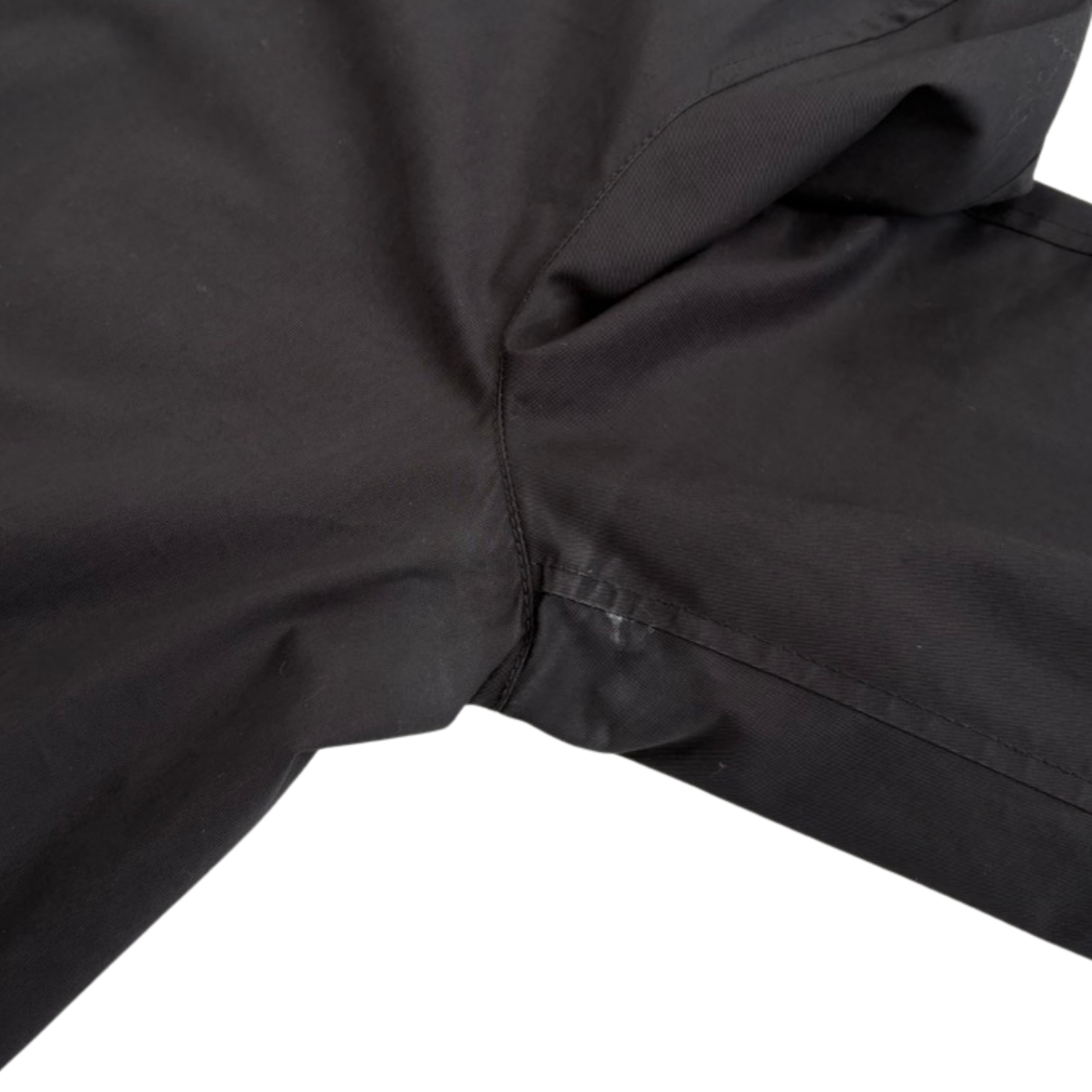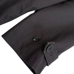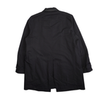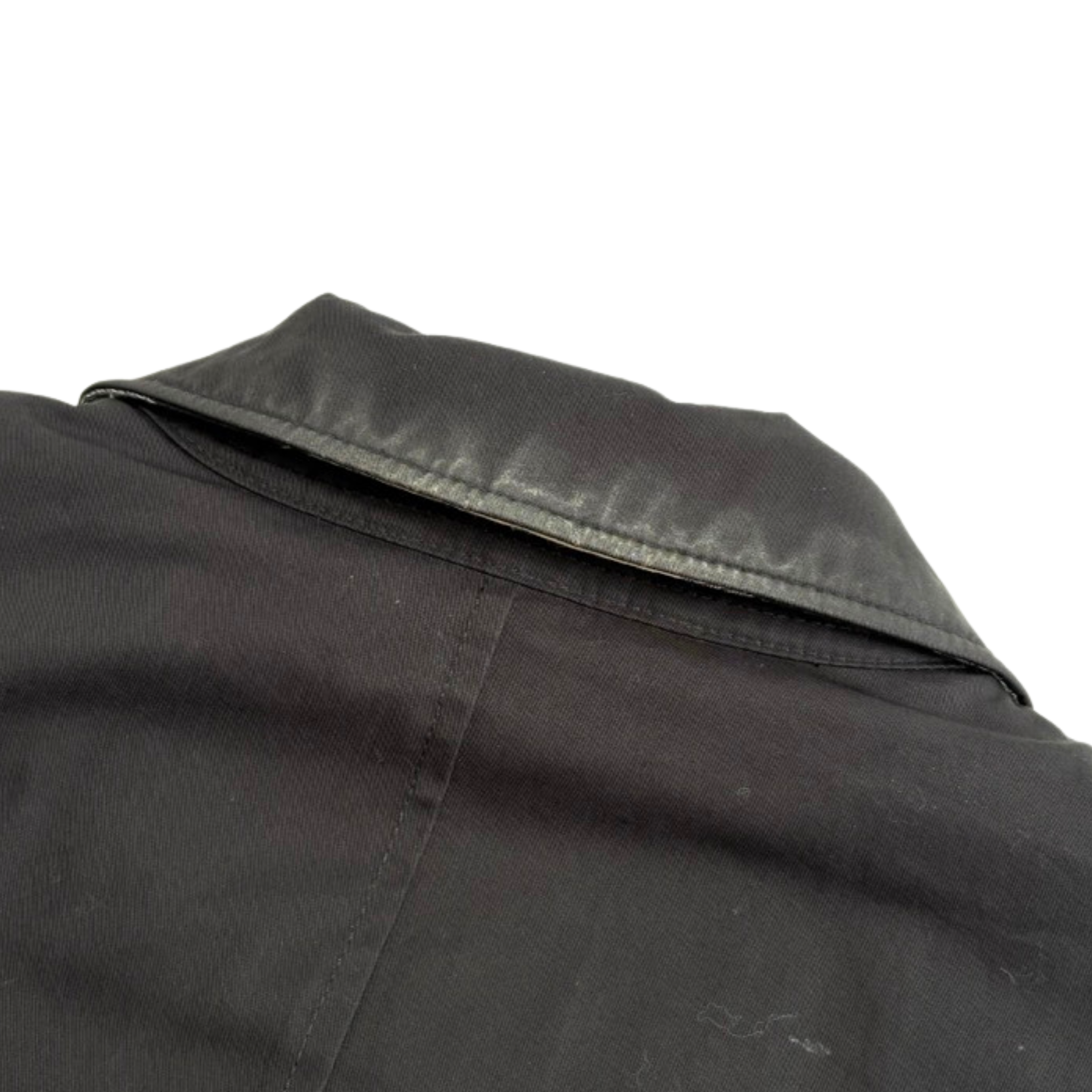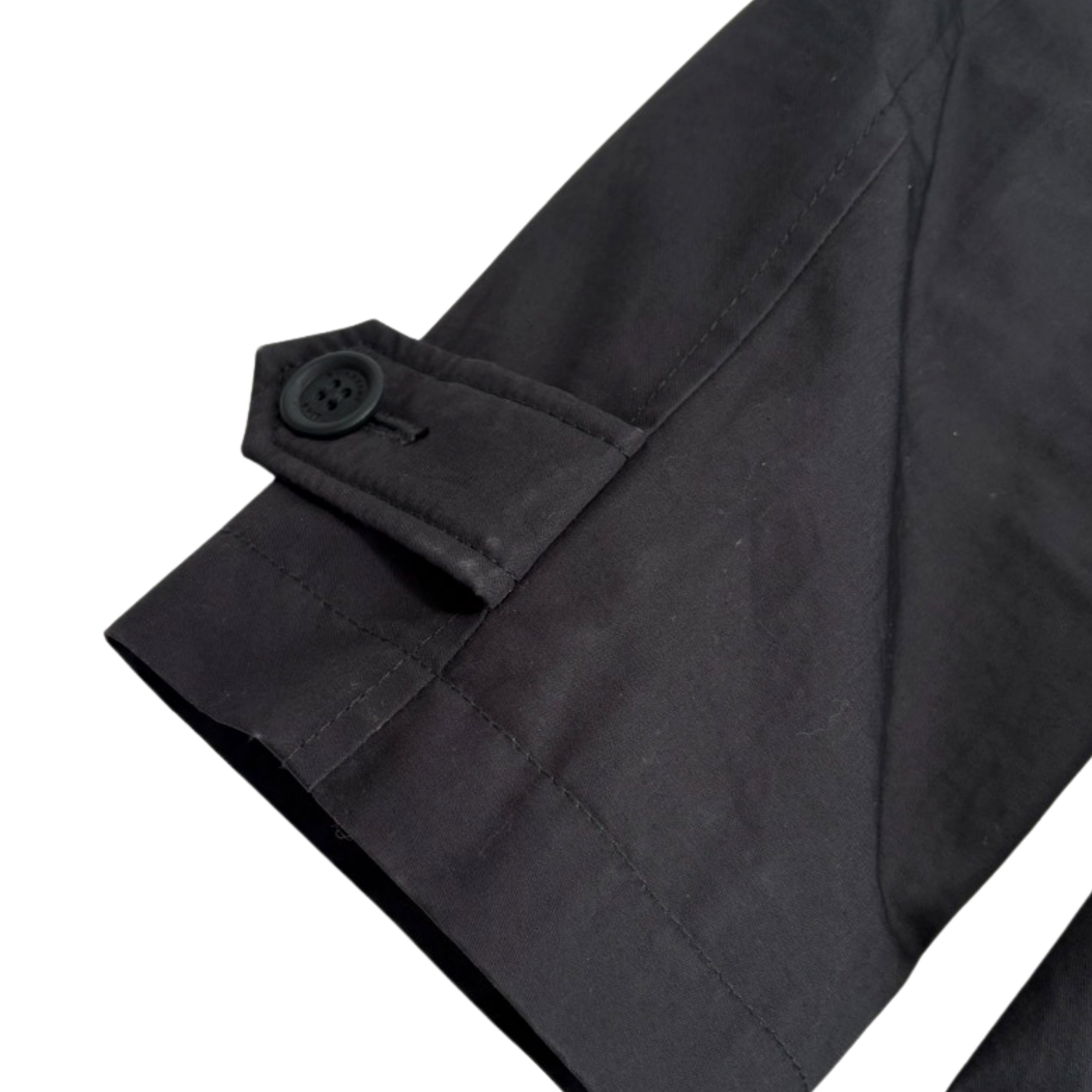 Burberry Brit mid length trench coat in black cotton with front hidden button placket, two front welt pockets, and back vent. Features a novacheck detachable wool lining.