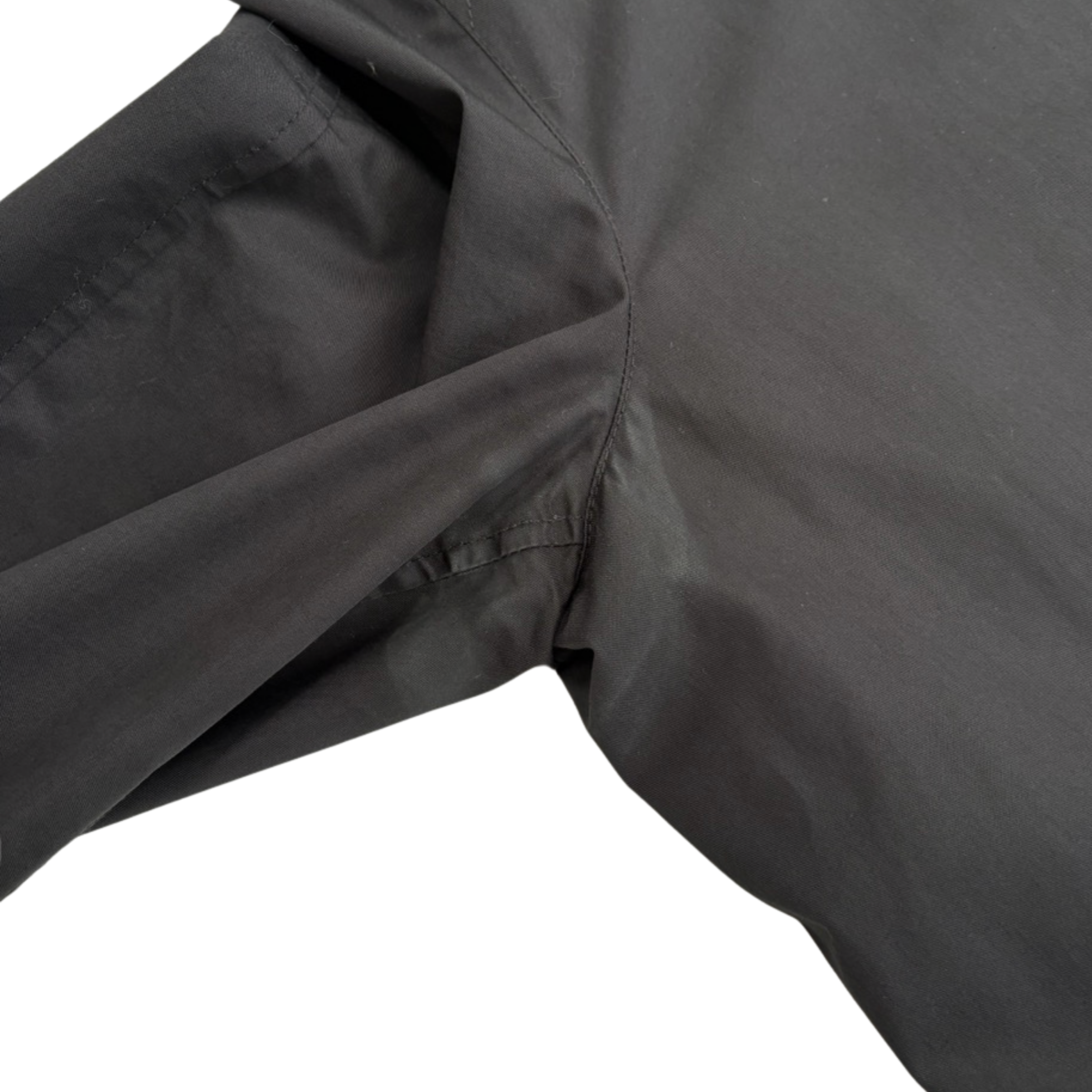 Good. Discolouration under armpits, some fading around edges, one button on the right sleeve cuff is broken.