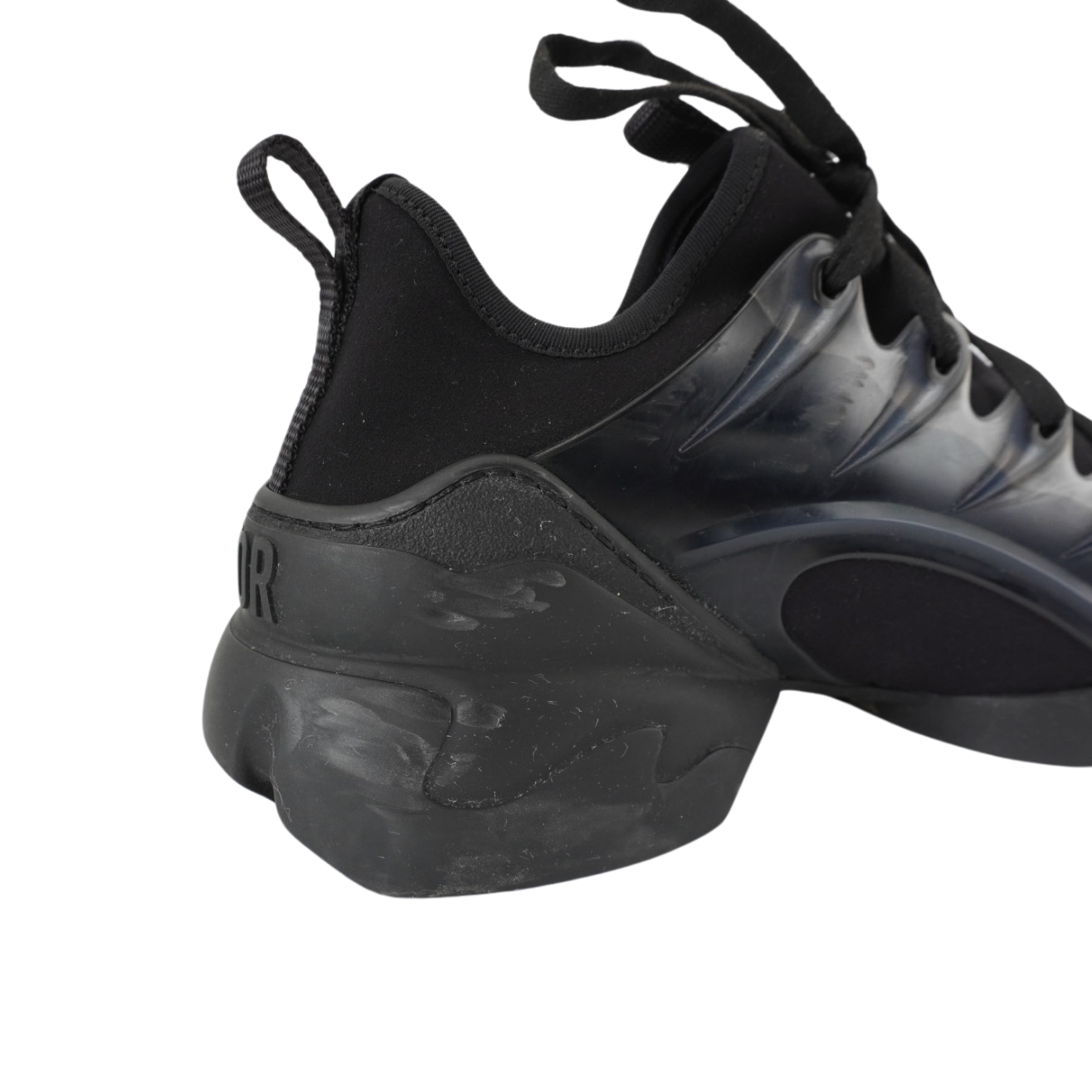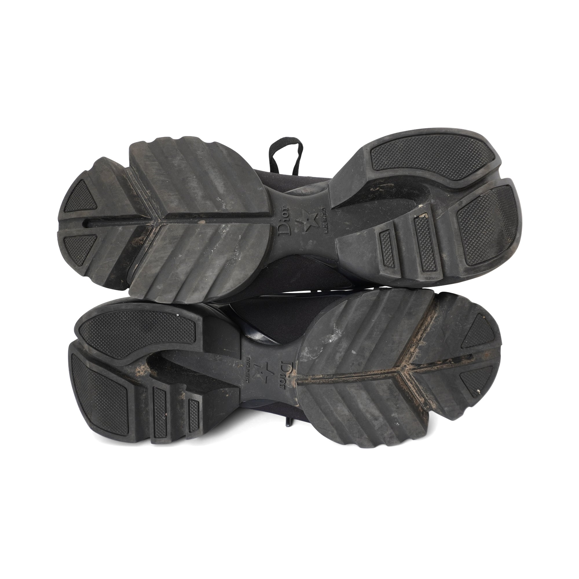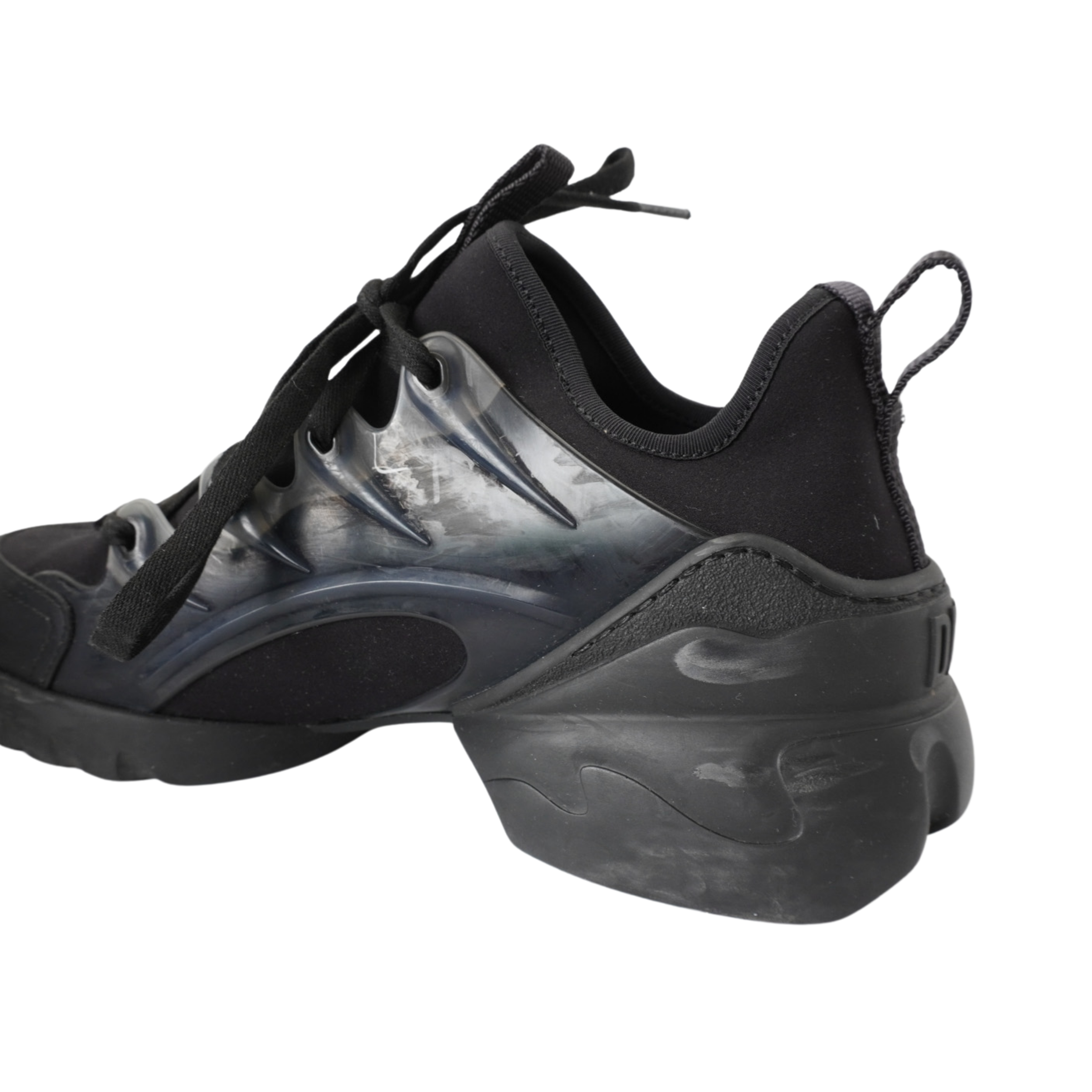 Christian Dior 'D-Connect' sneakers in black neoprene and leather with clear rubber side panels and a chunky tonal soles.