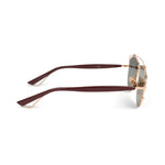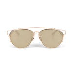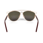 Christian Dior 'Technologic' sunglasses in rose gold metal with reflective gold lenses, maroon acetate arms, a brow bar detail, and a squared cat eye frame.