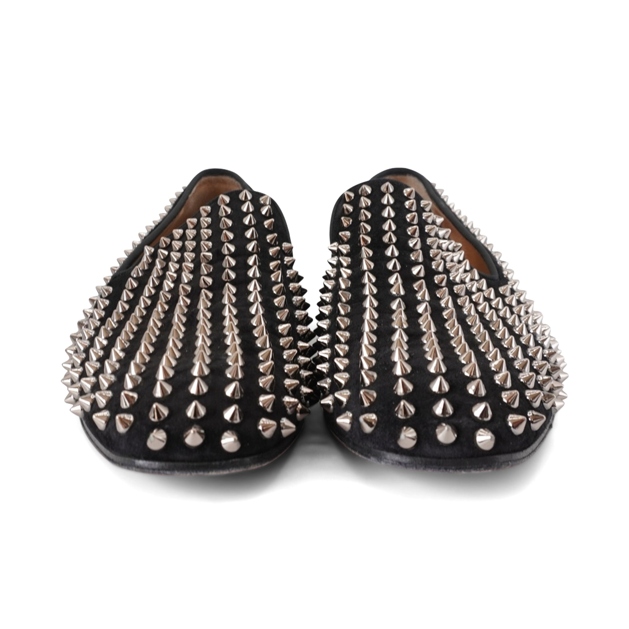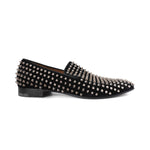Christian Louboutin 'Dandelion' loafers in black suede embellished with all-over silver spike studs.