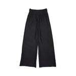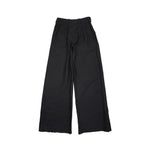 Dries Van Noten high-waisted wide-leg pants in black natural fibre blend. Features a raw leg hem, a zipper and button front closure, and side slip-pockets.
