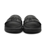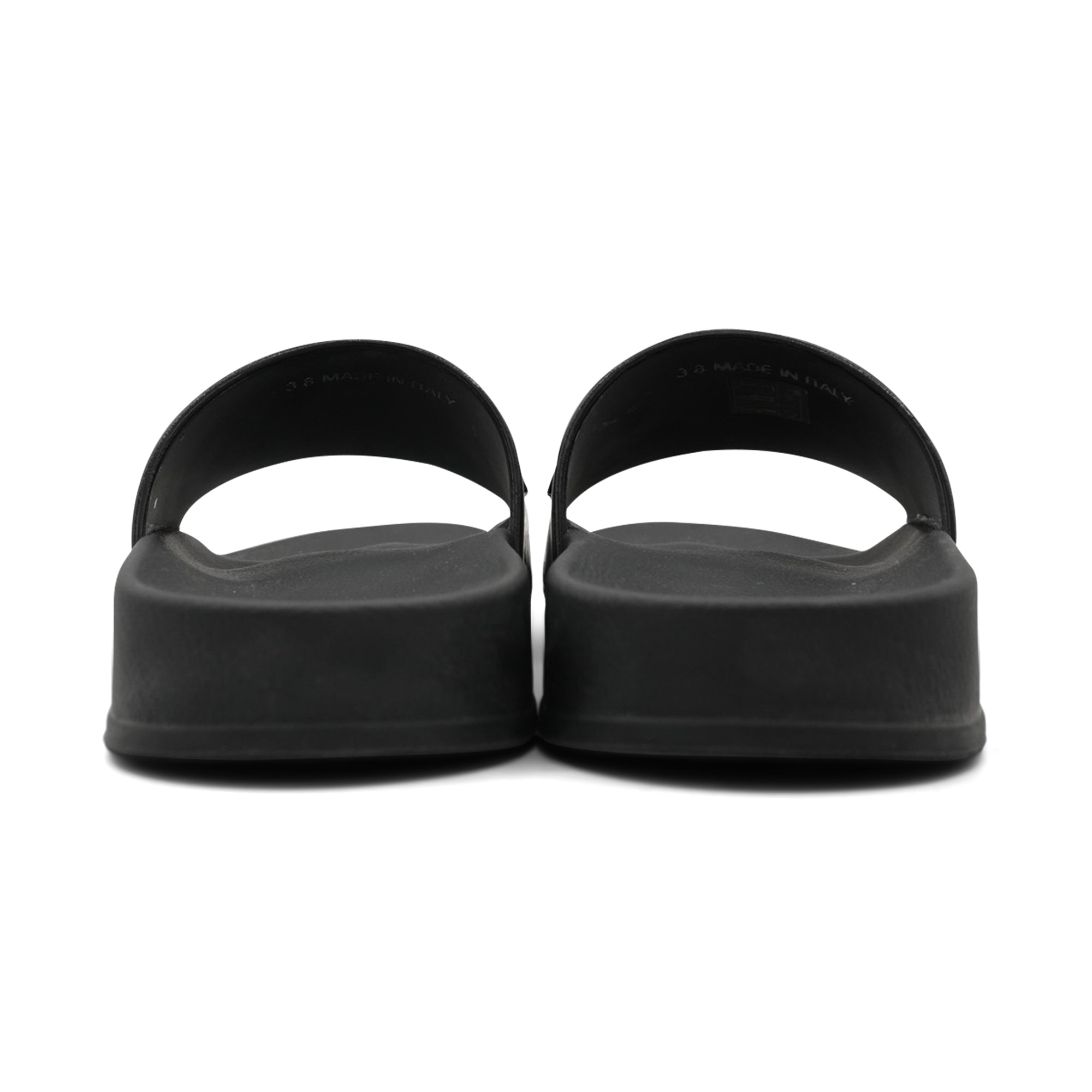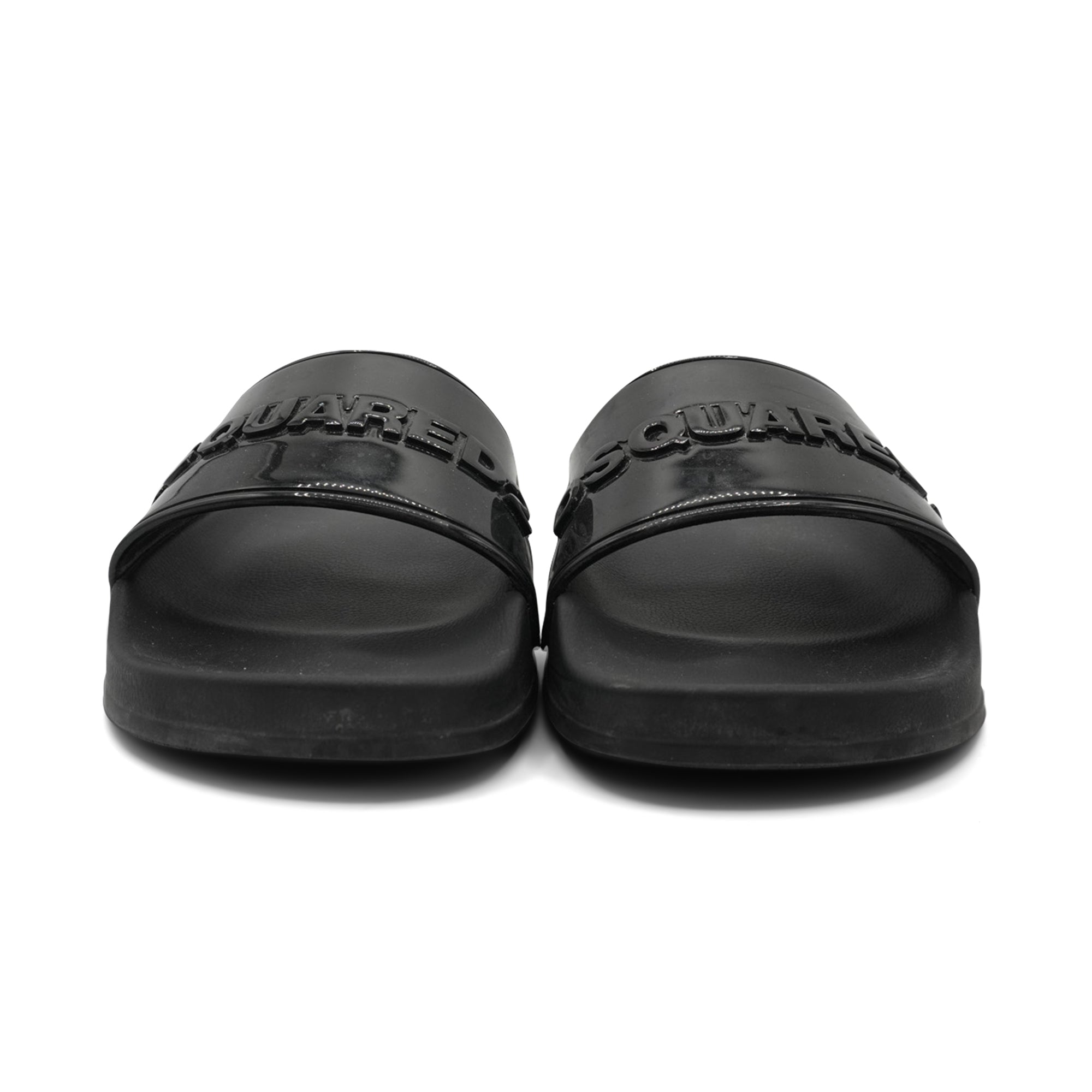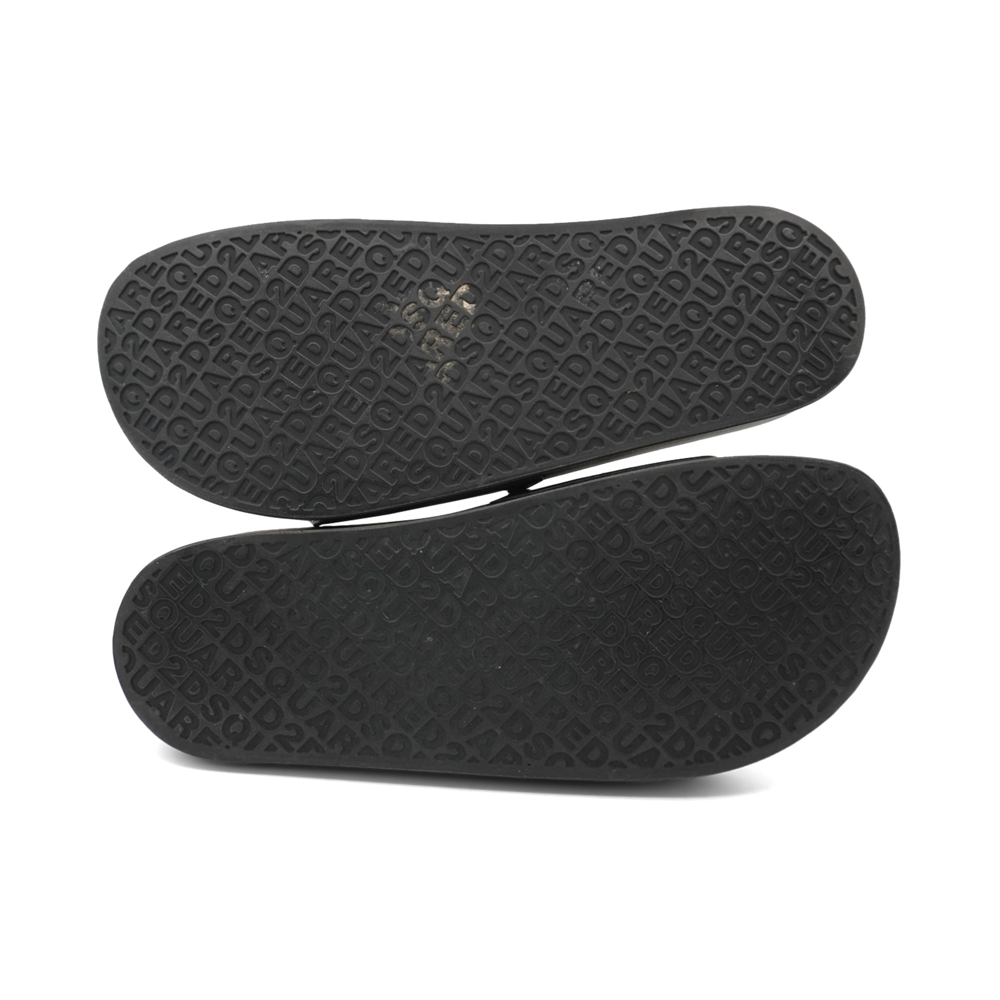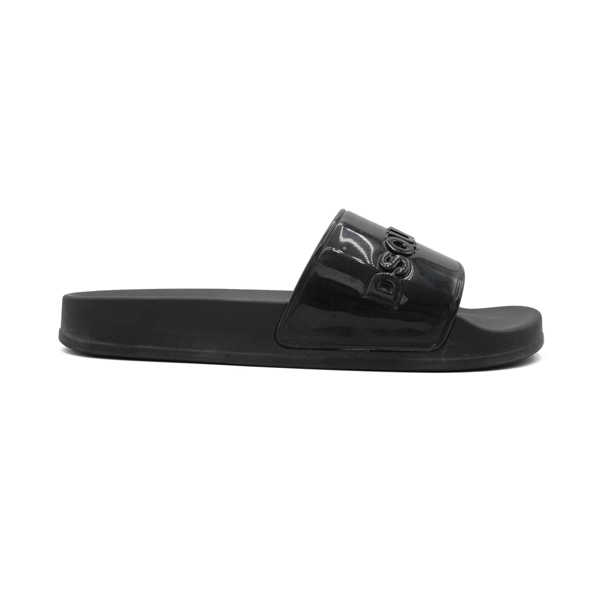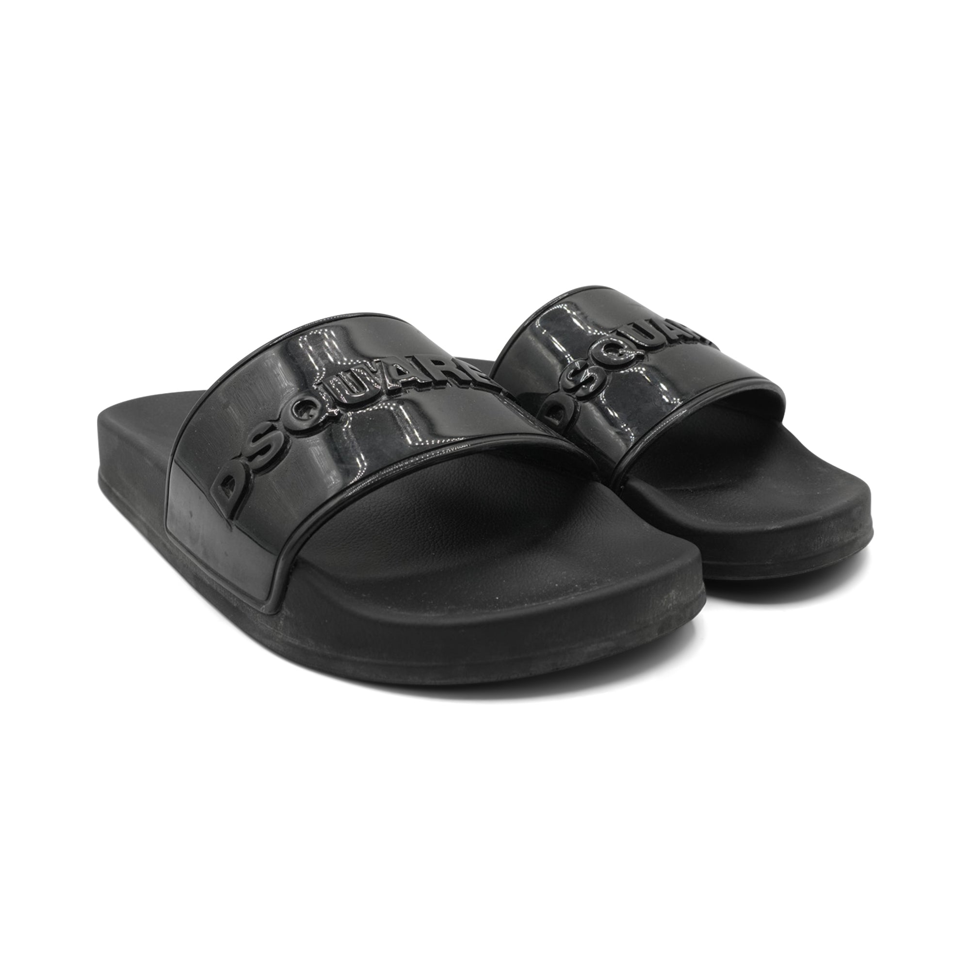 Dsquared2 black rubber slide sandals with shiny logo embossed straps.
