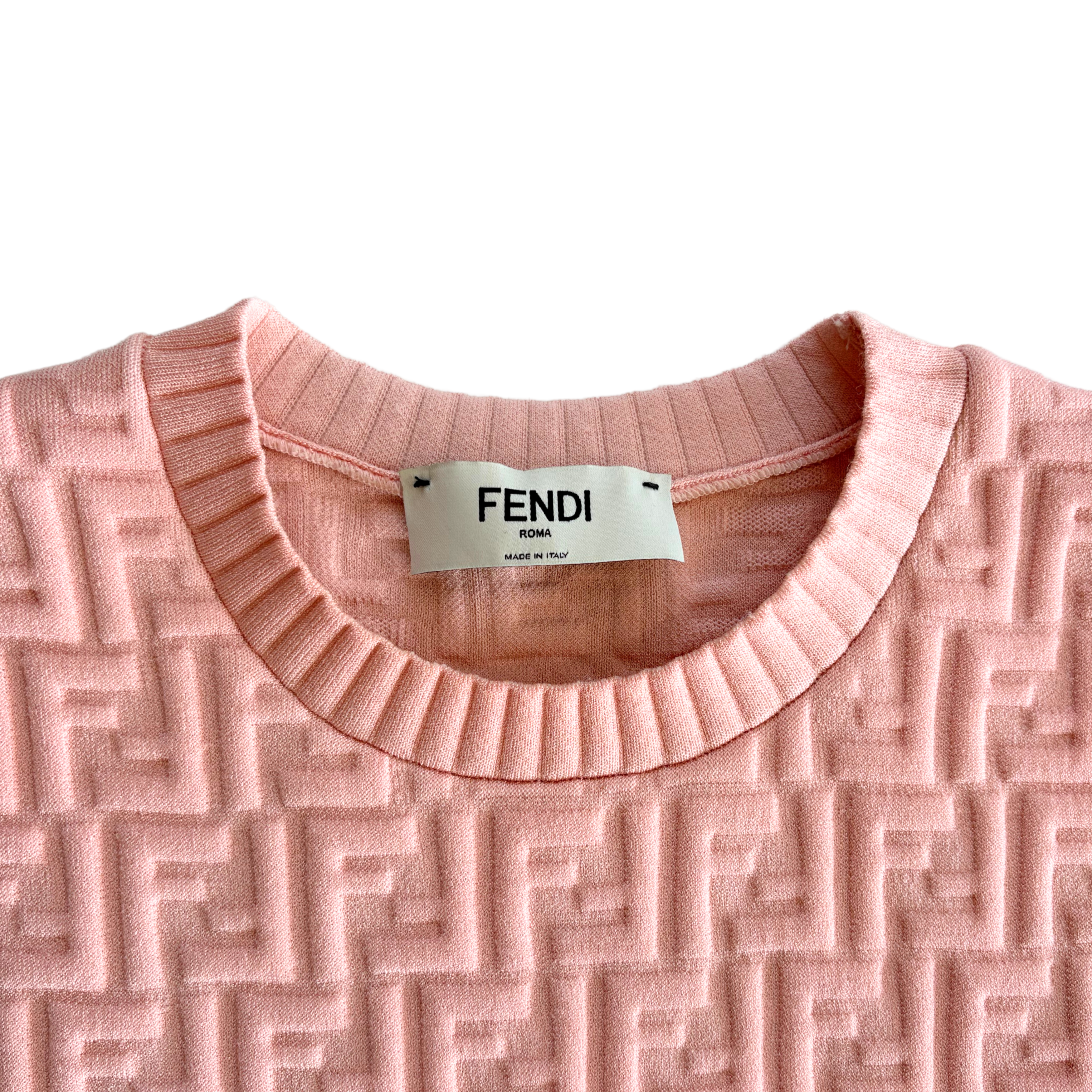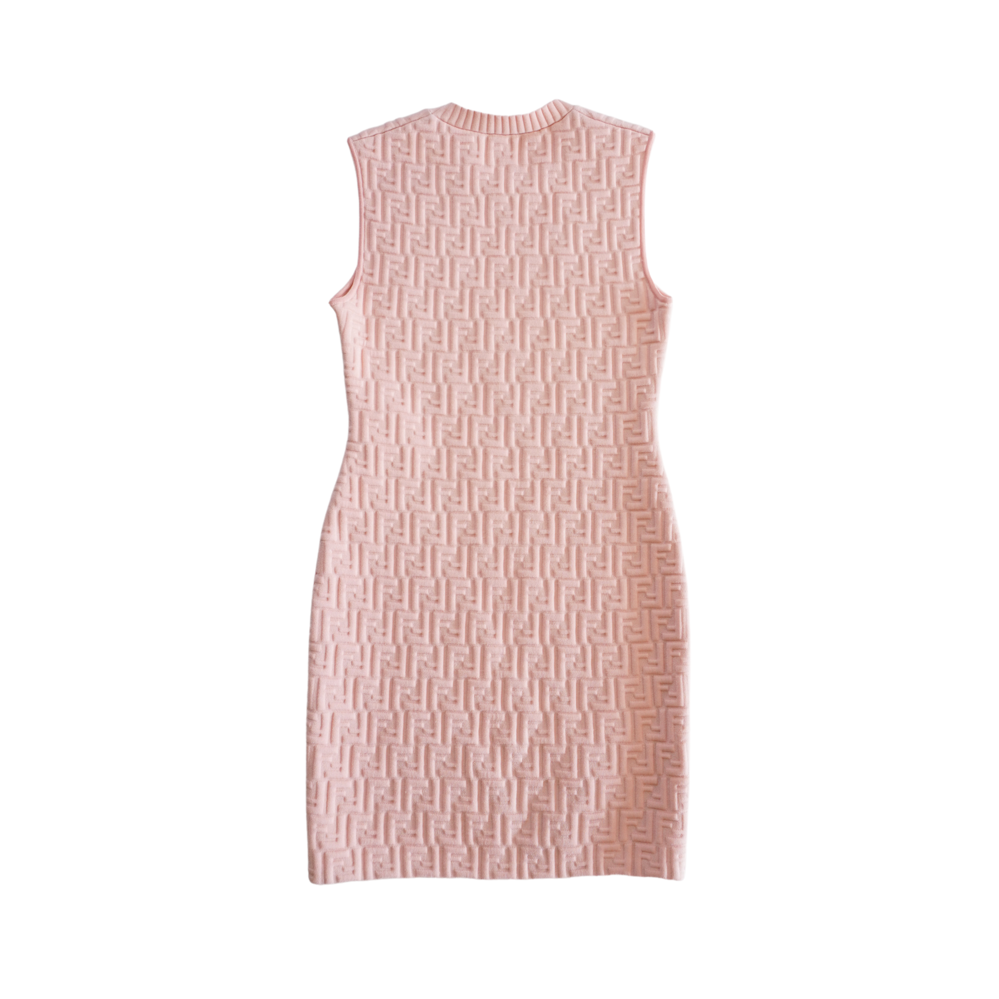 Fendi fitted mid-length dress in peach pink with an all-over raised embossed 'FF Zucca' monogram print.