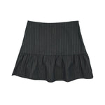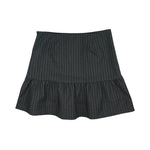Ganni mini skirt in grey pin stripe cotton with a ruffled hem and a hidden side-zip opening.