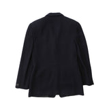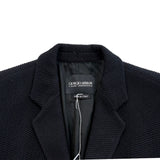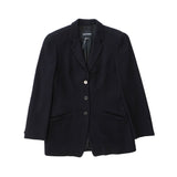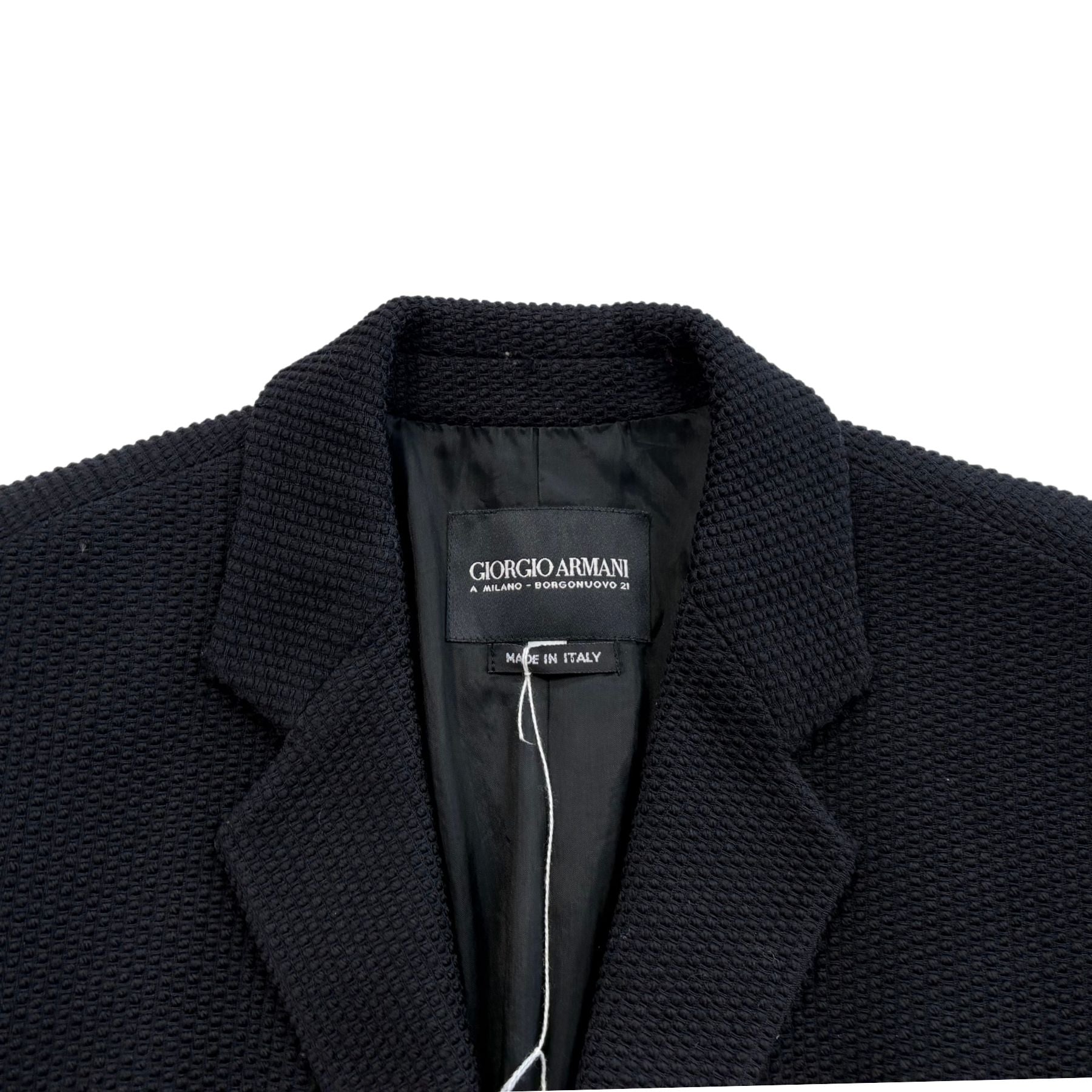 Giorgio Armani three button blazer in black waffle textured wool with slit pockets and a notched lapel.