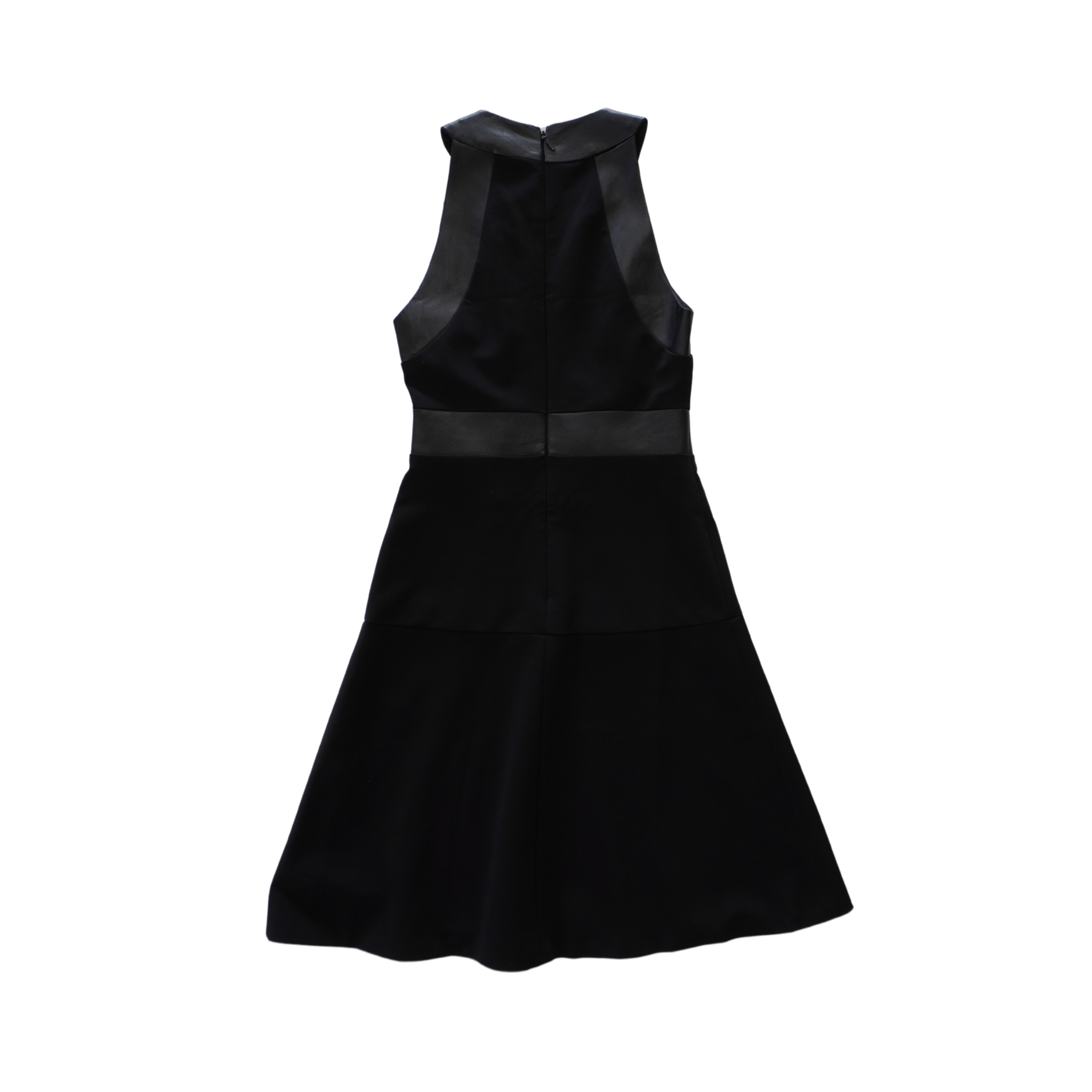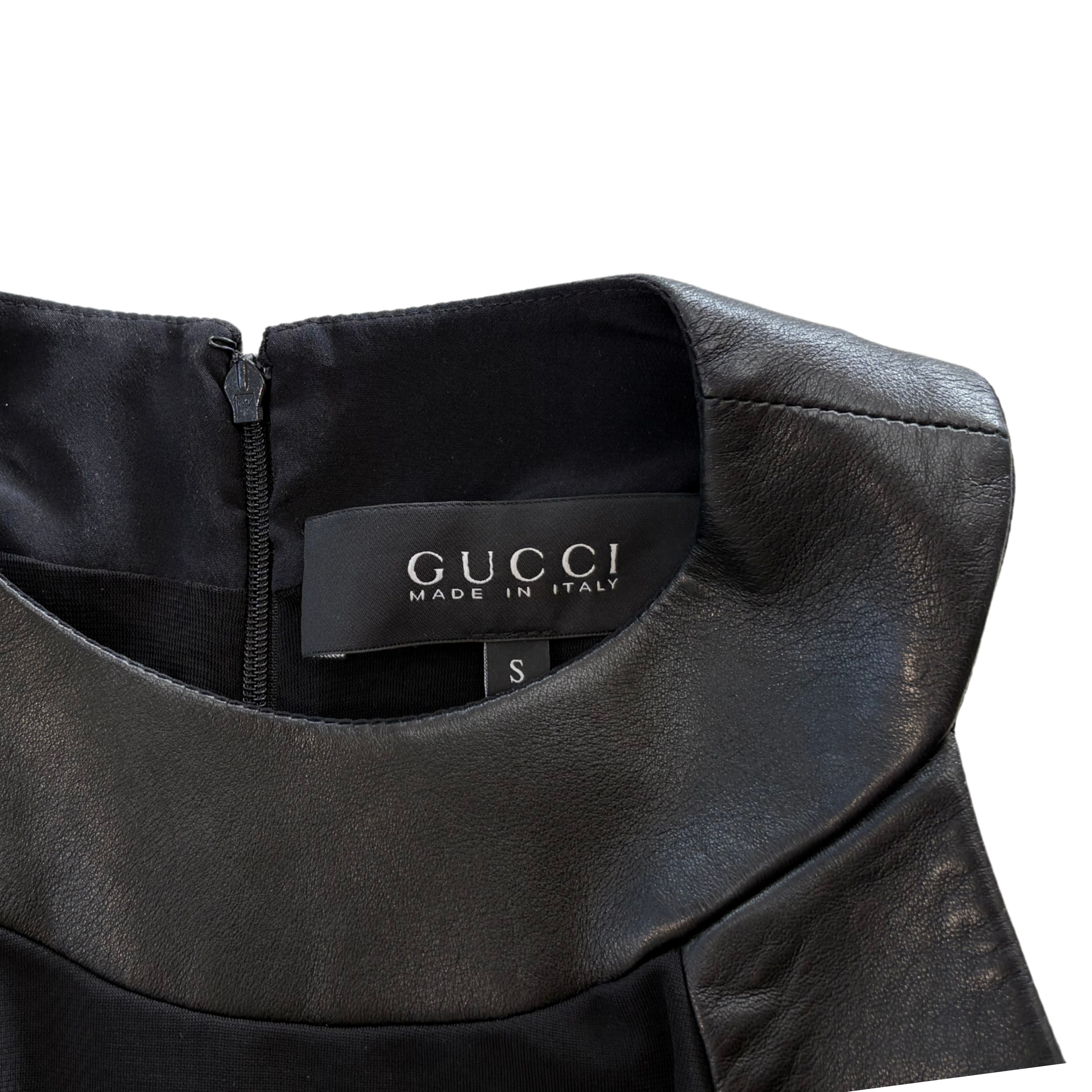 Gucci a-line dress in black viscose with a high-neckline and a leather trim.