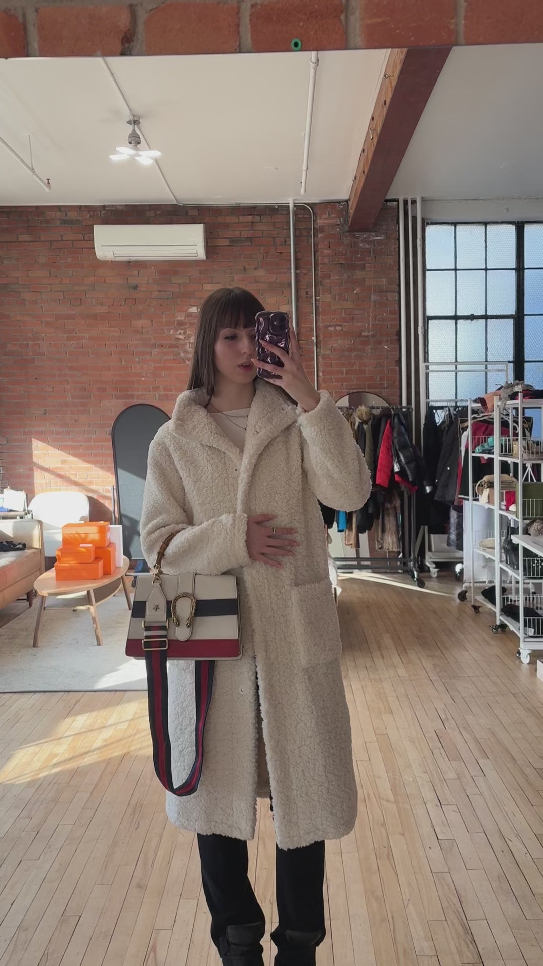 Good. Creasing on top flap, light discolouration and staining on white leather throughout, wear on metal hardware, discolouration in top flap around metal hardware, large scratch on back of bag.