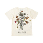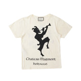 Gucci 'Chateau Marmont' t-shirt in cream cotton with a black silhouette graphic on the front and a large floral graphic on the back.