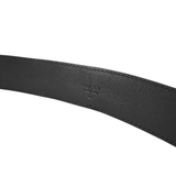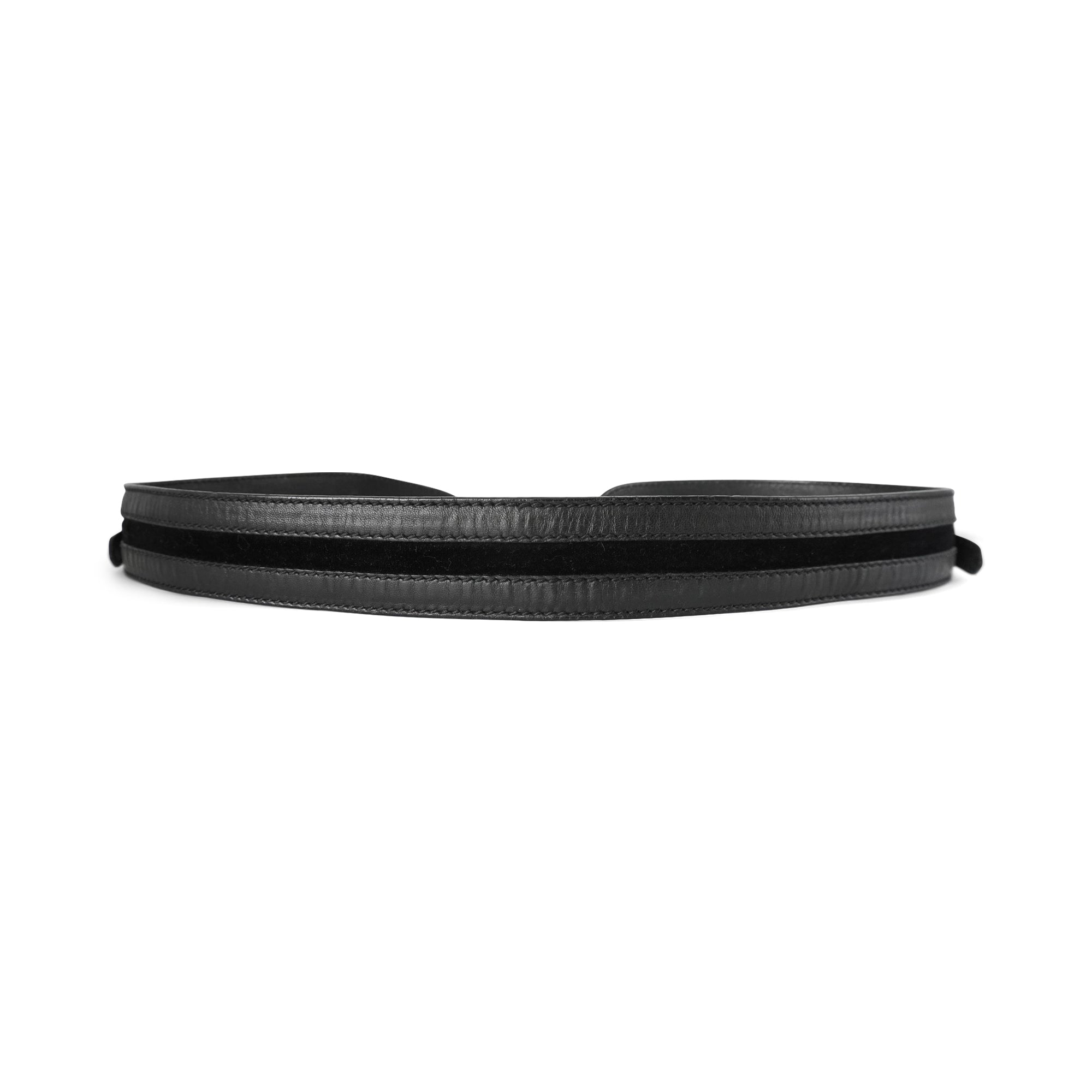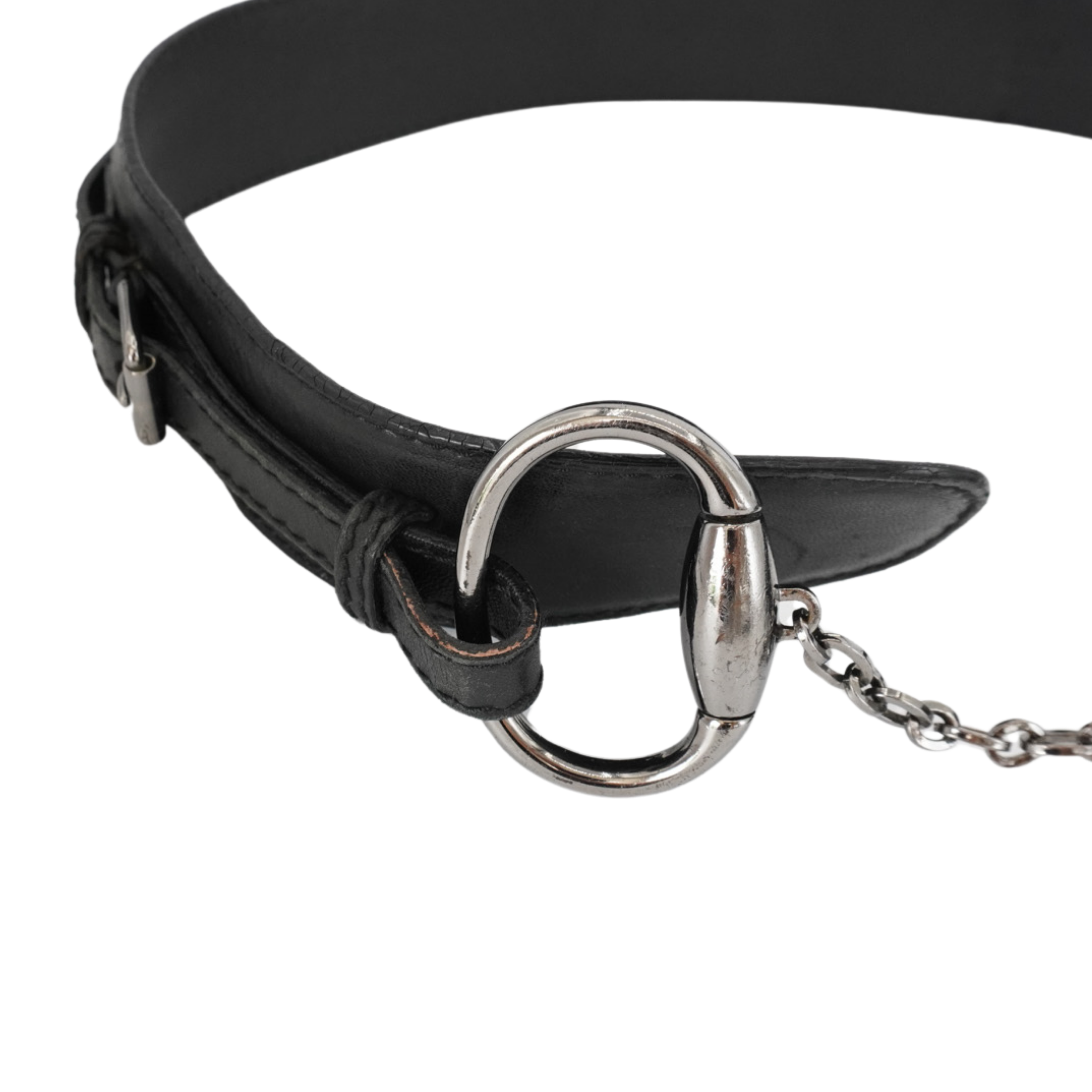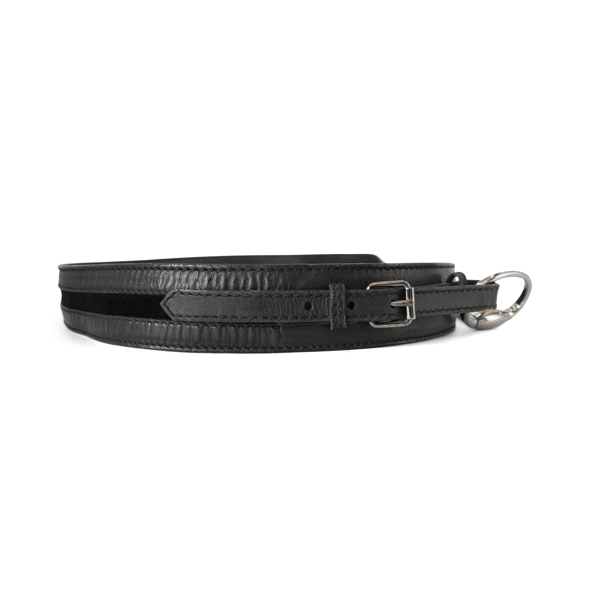 Gucci belt in black leather with a suede trim and a gunmetal horse-bit toggle closure.