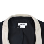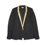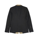 Helmut Lang single-breasted blazer in black wool with a beige peak leather collar and a one-button closure.