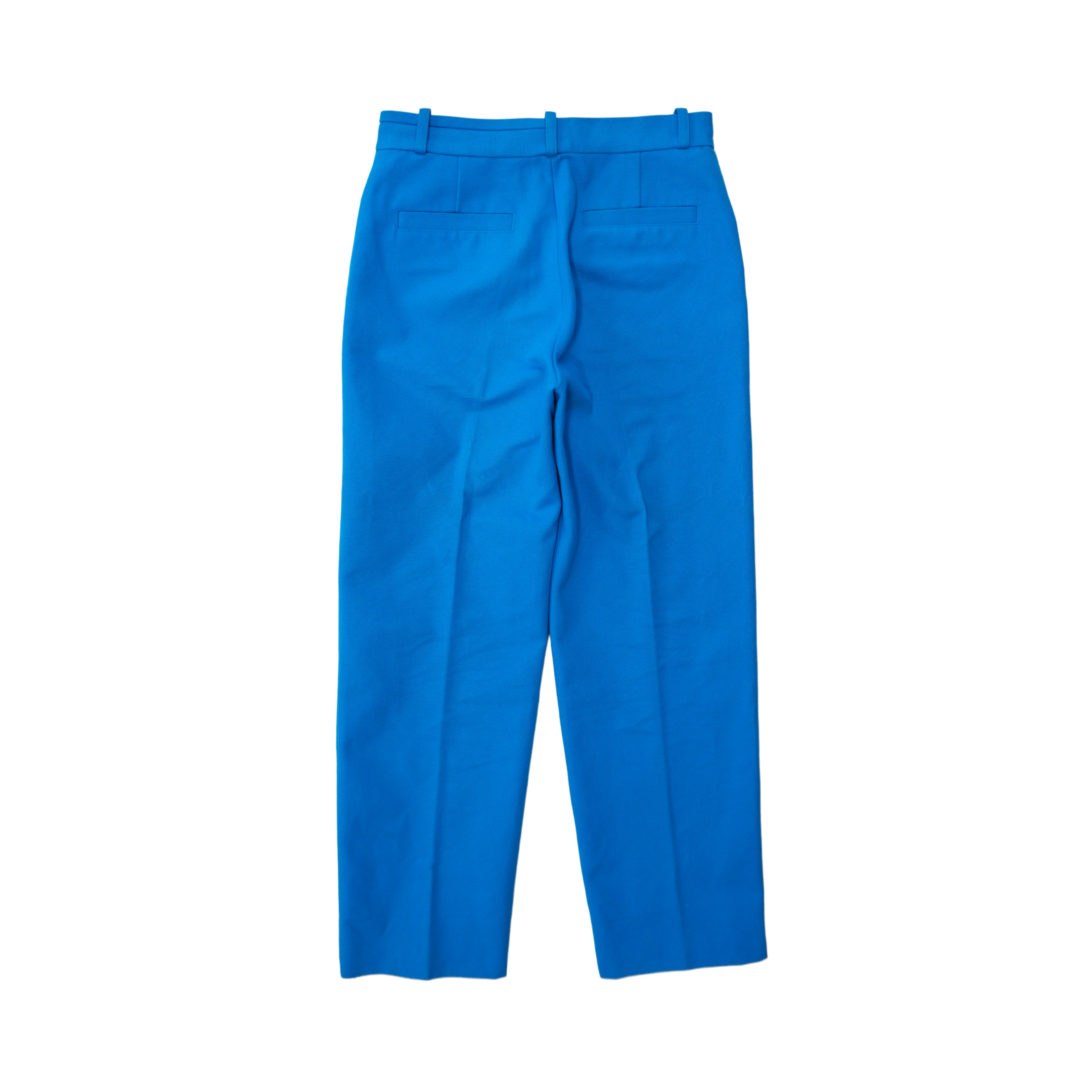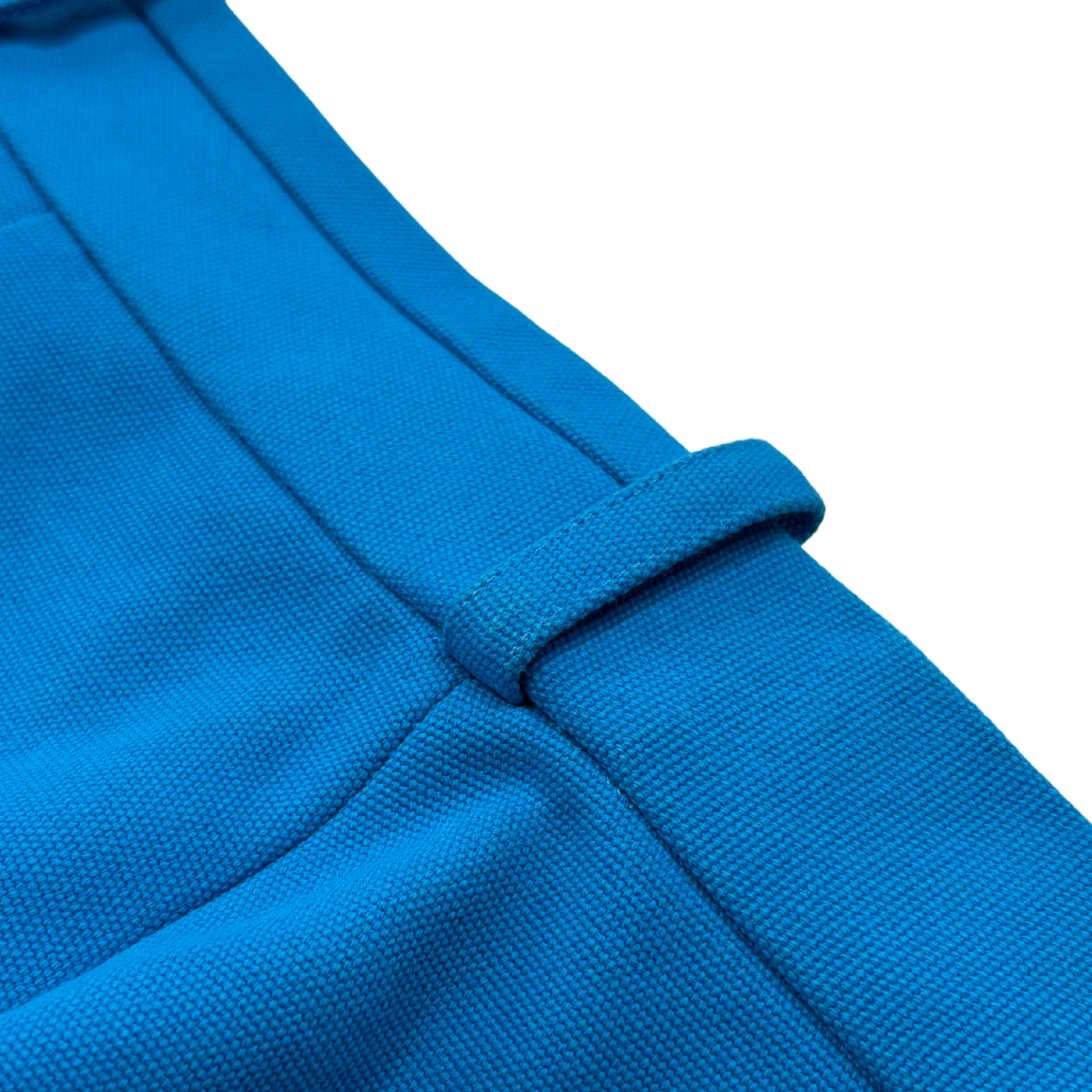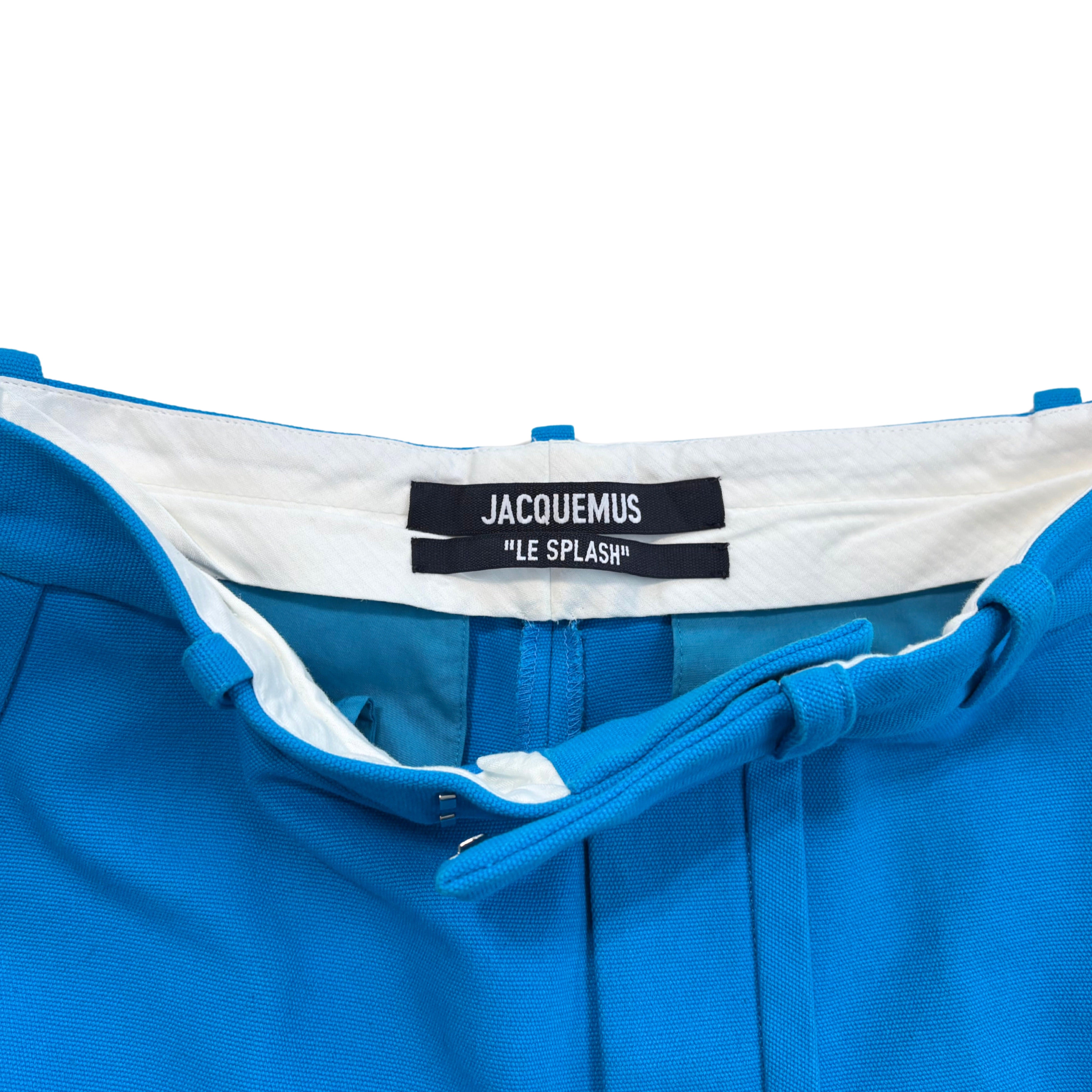 Jacquemus 'Le Splash' straight-leg trousers in bright blue cotton canvas with a zip-hook opening and a front pleat down the legs.