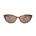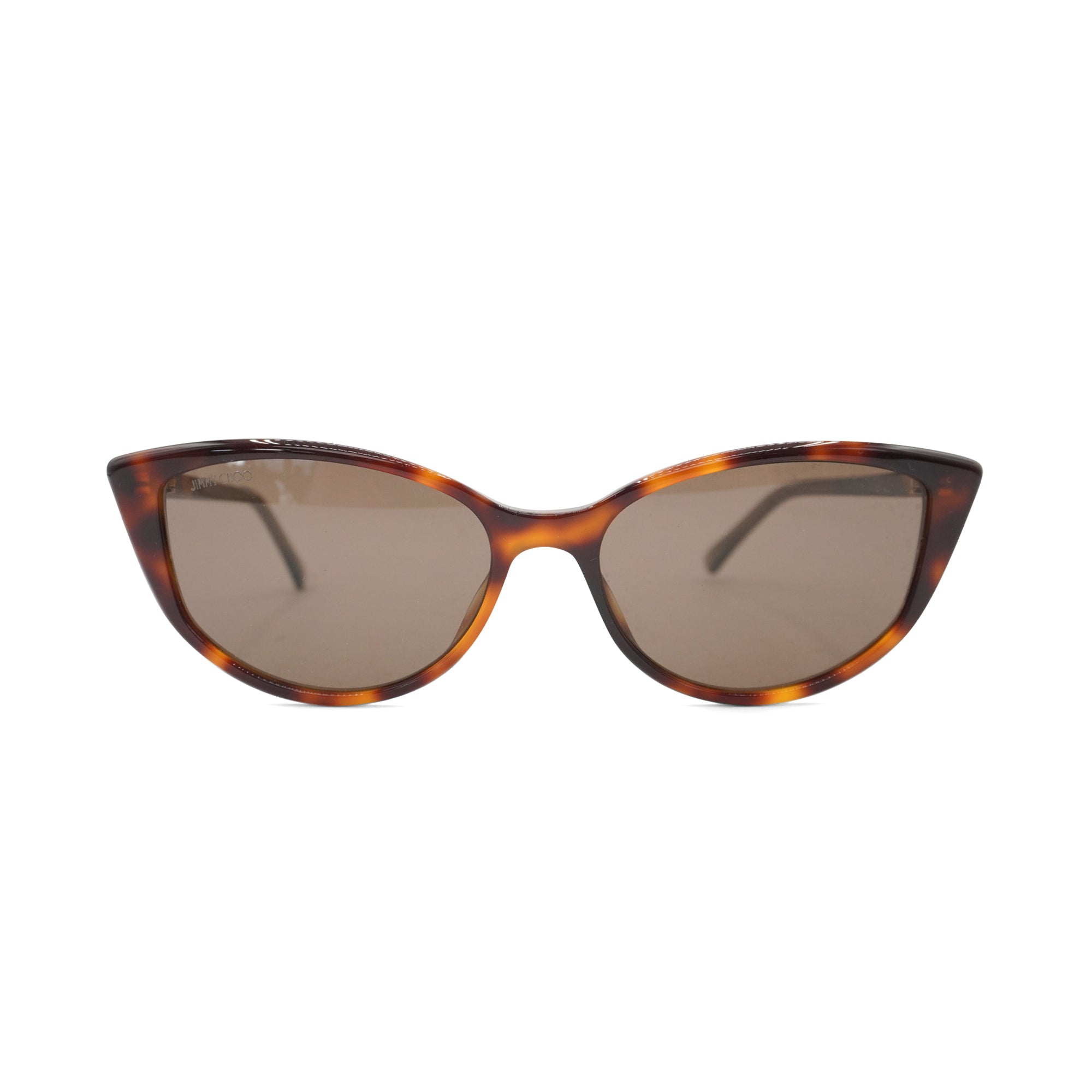 Jimmy Choo cat eye sunglasses in tortoiseshell acetate with glitter details on the ends of the arms.