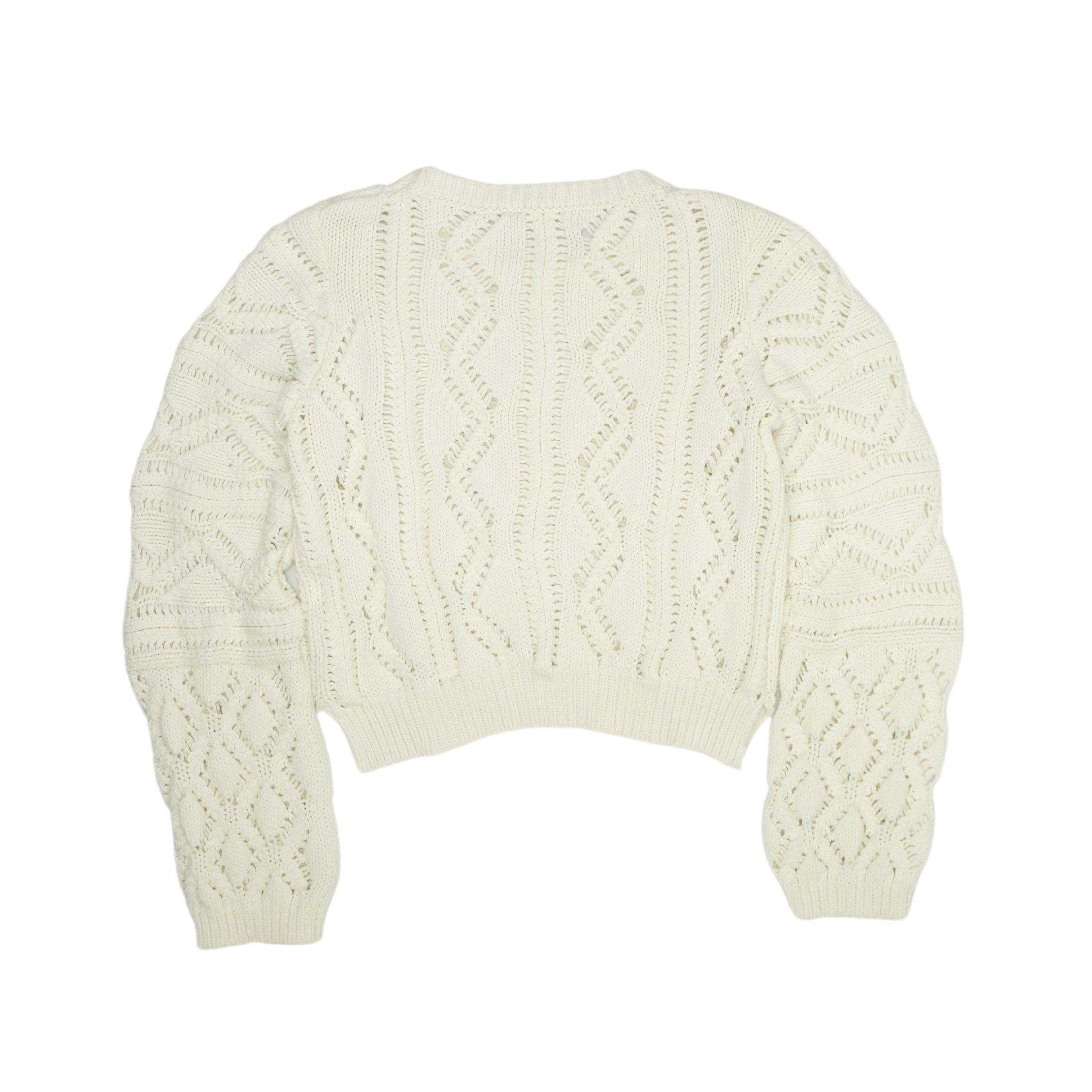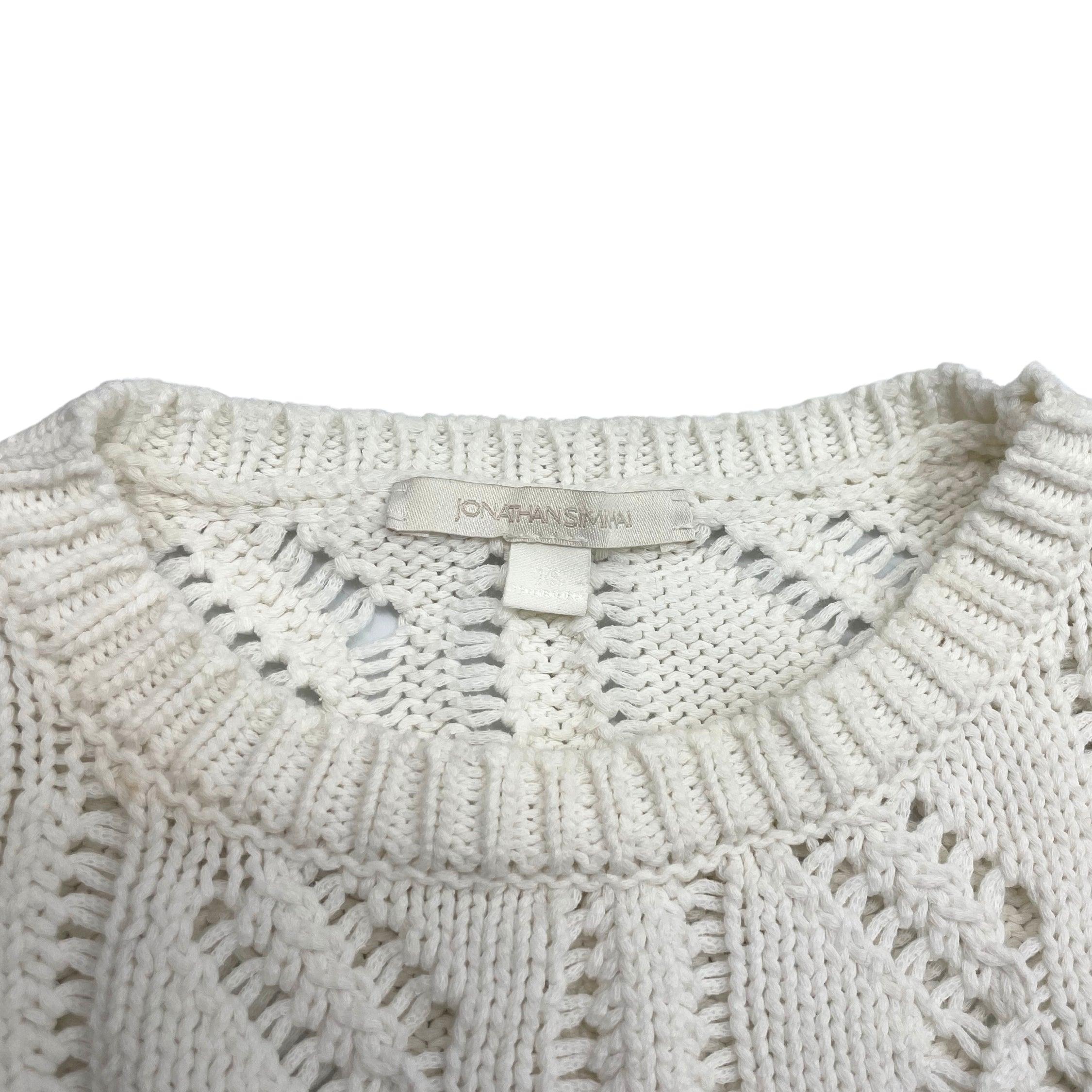 Jonathan Simkhai sweater in a white loose cable knit cotton blend with ribbed cuffs and a cropped fit.