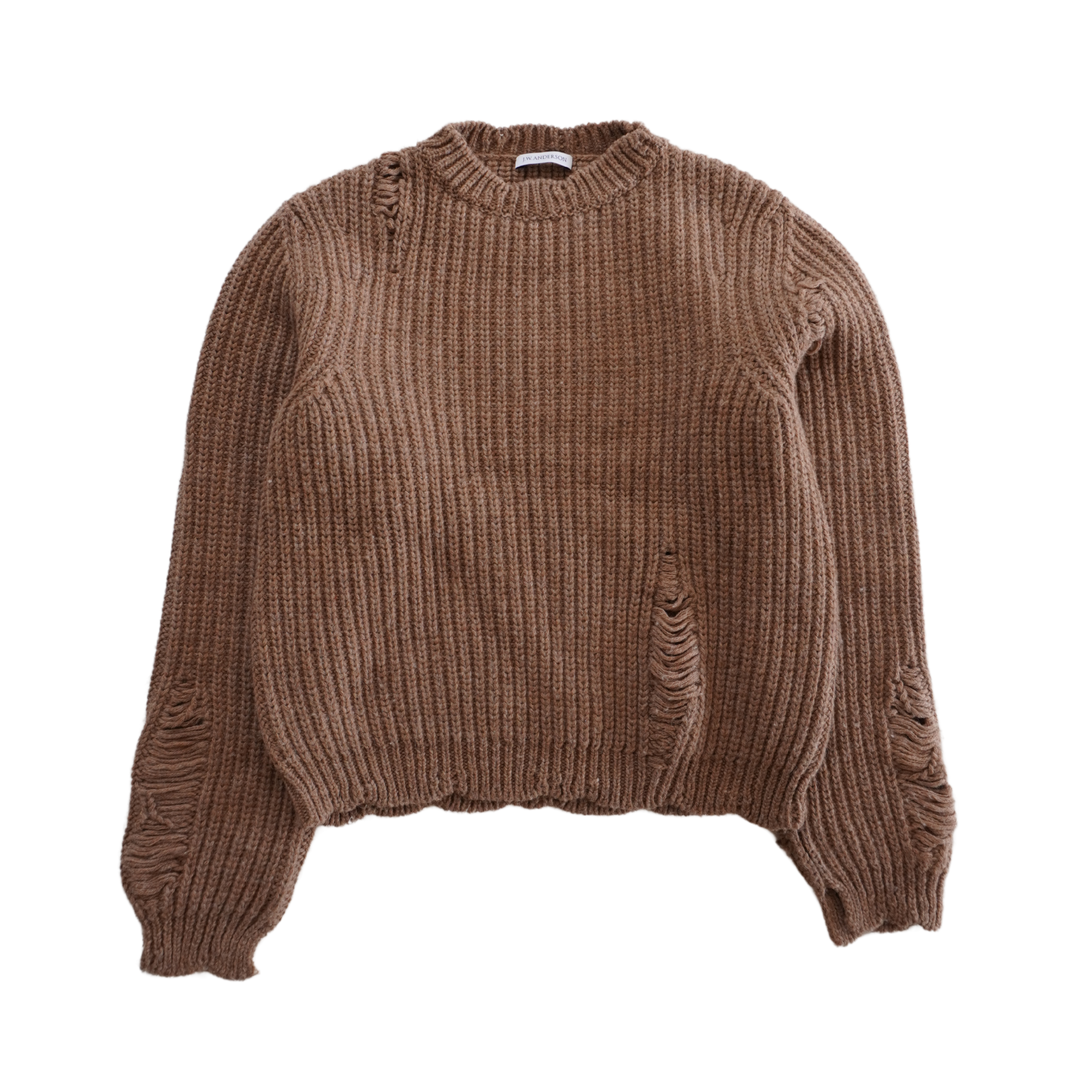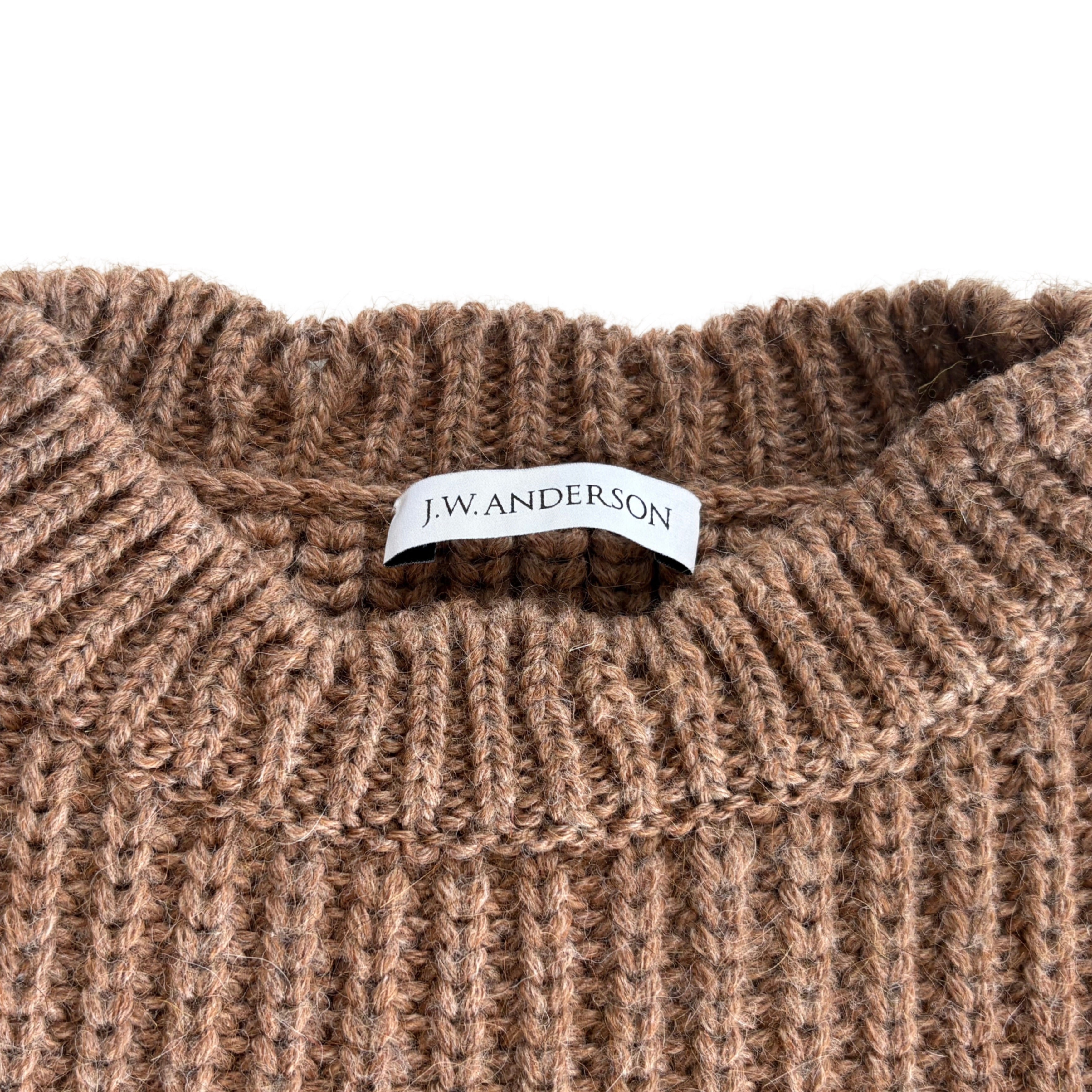 JW Anderson pullover sweater in camel brown thick knit alpaca-wool blend with distressing details throughout.