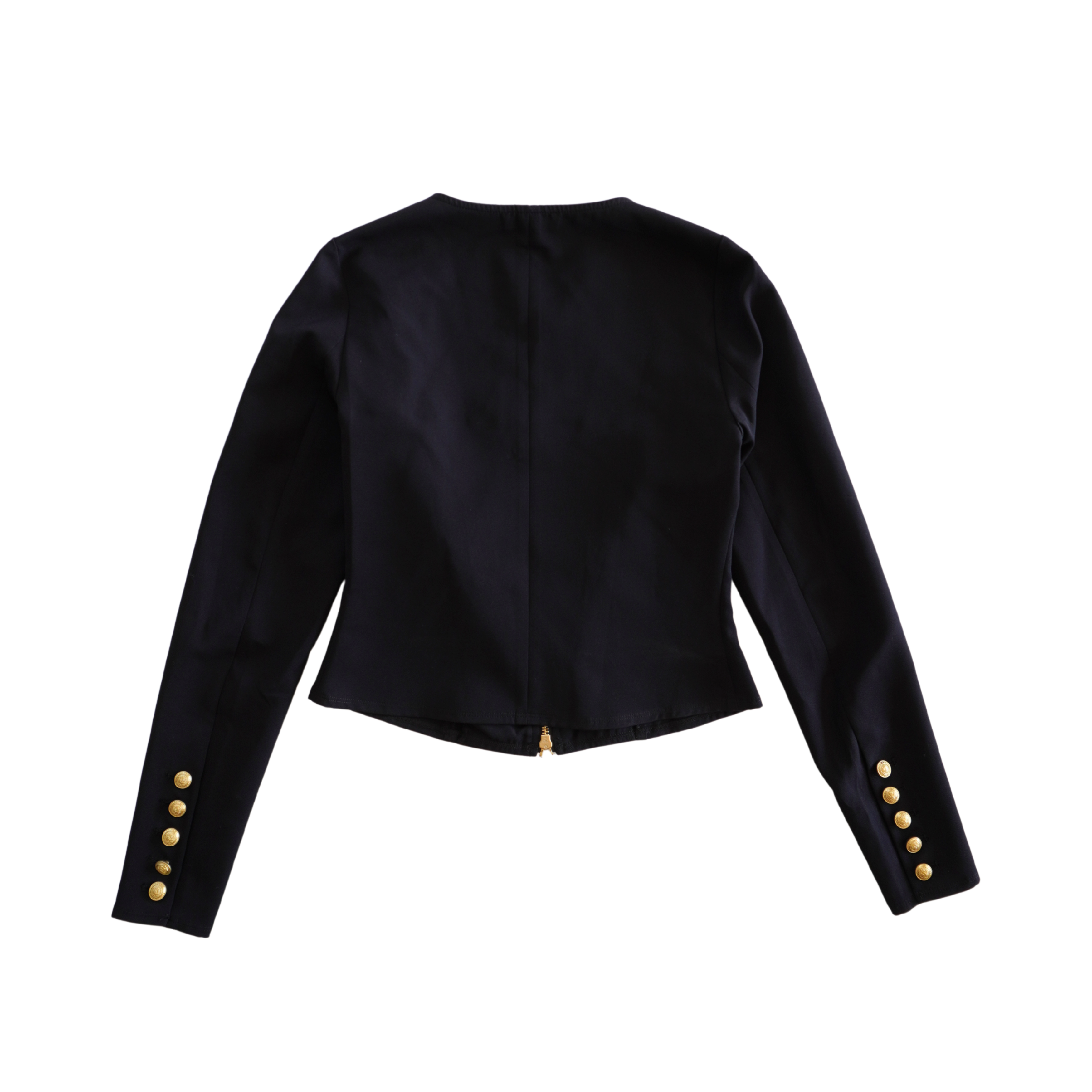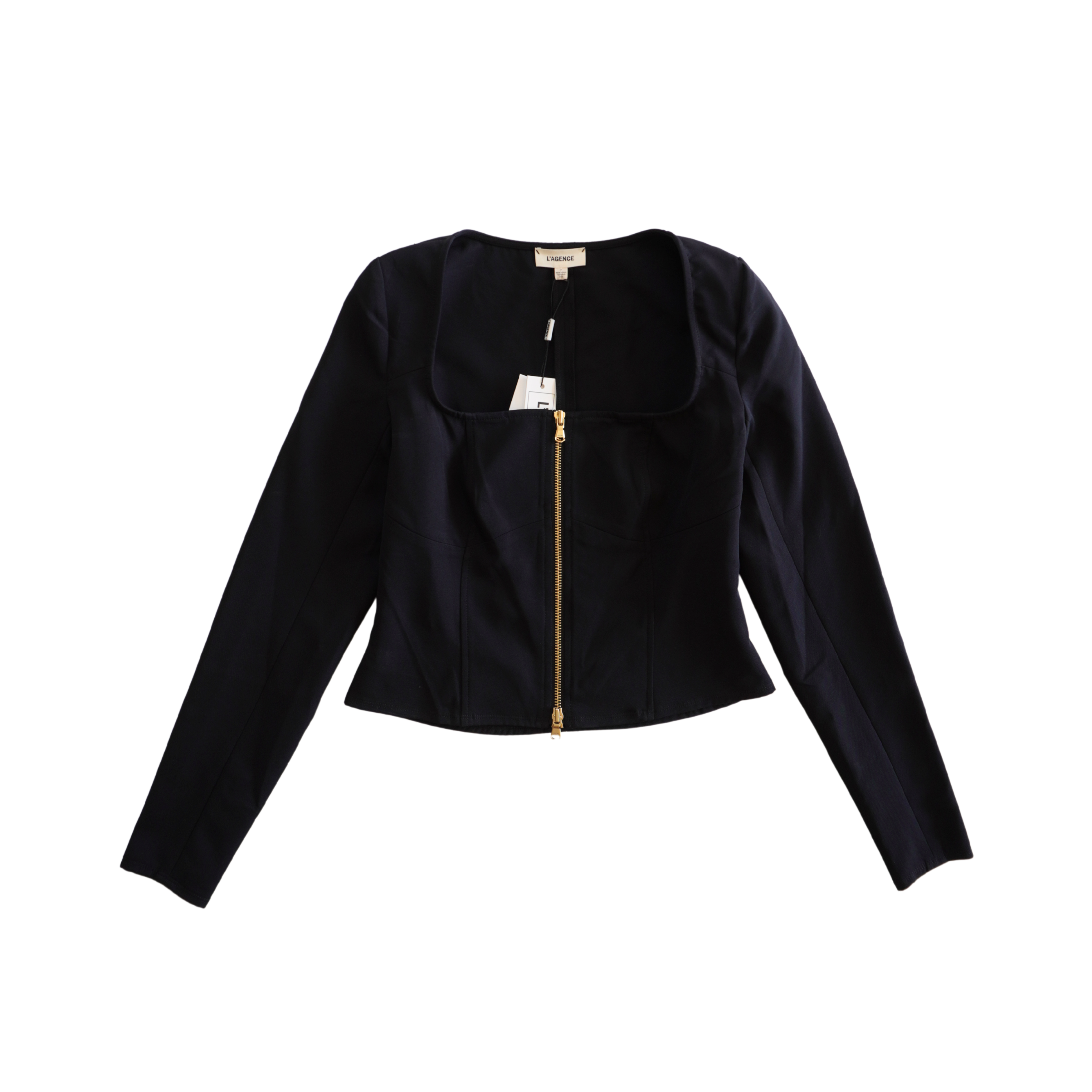 L'Agence 'Ainslee' long-sleeve scoop neck black top with two way zipper down the front and button cuffs.