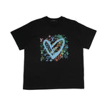 Louis Vuitton t-shirt in black cotton with a multicolour monogram and spray painted heart graphic on the chest.