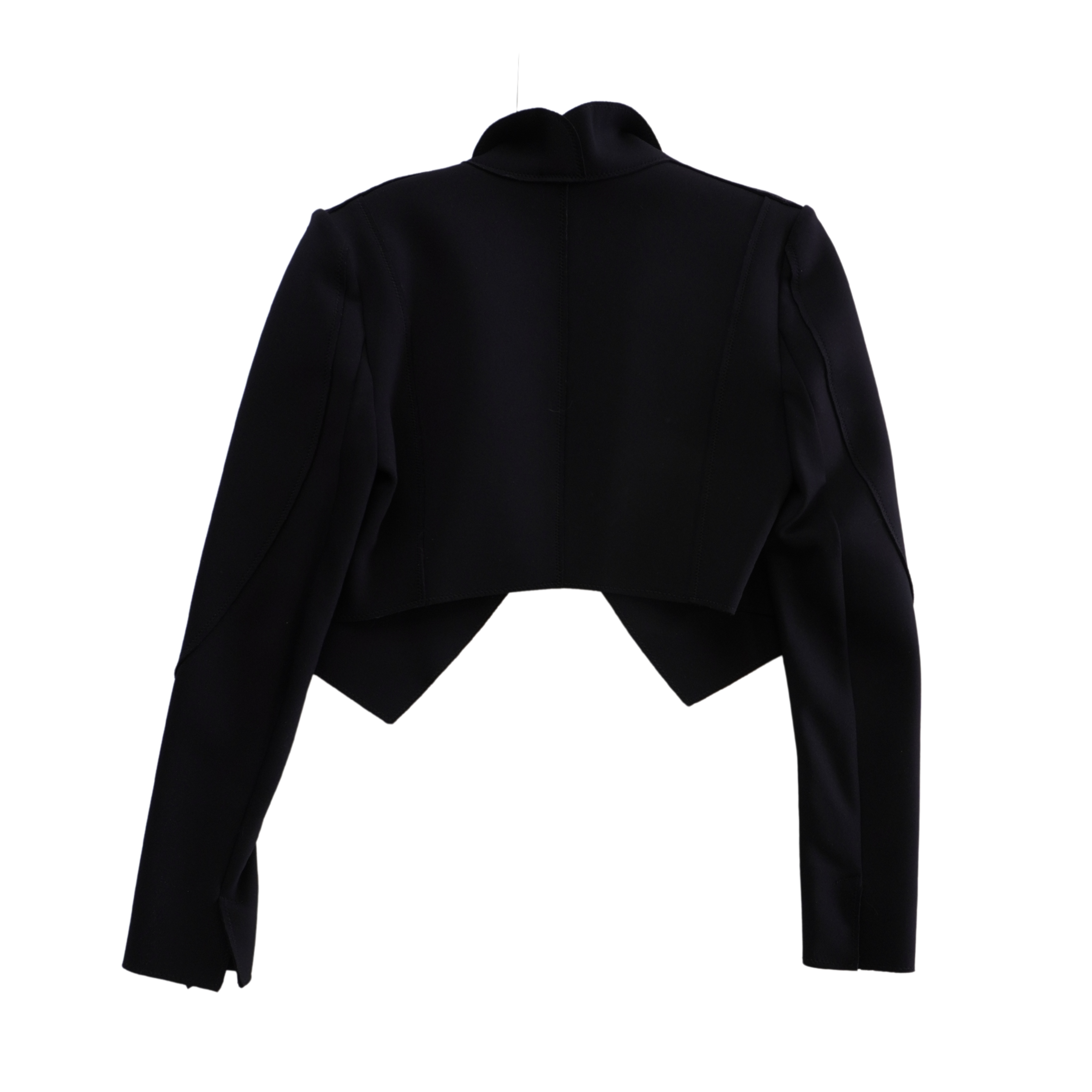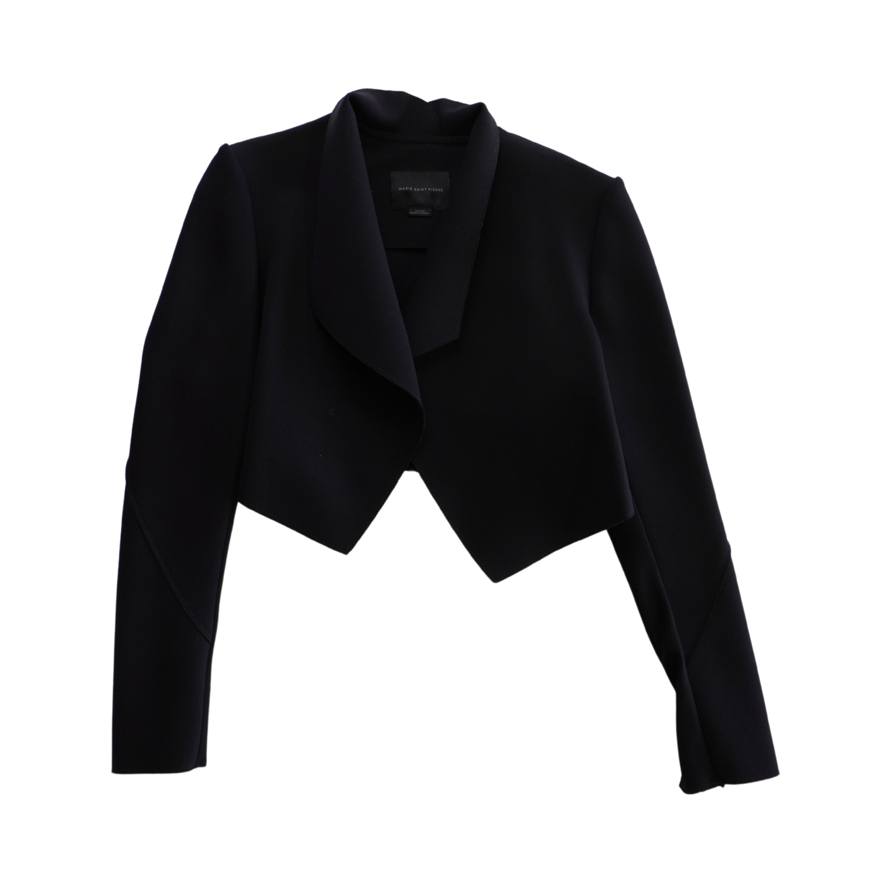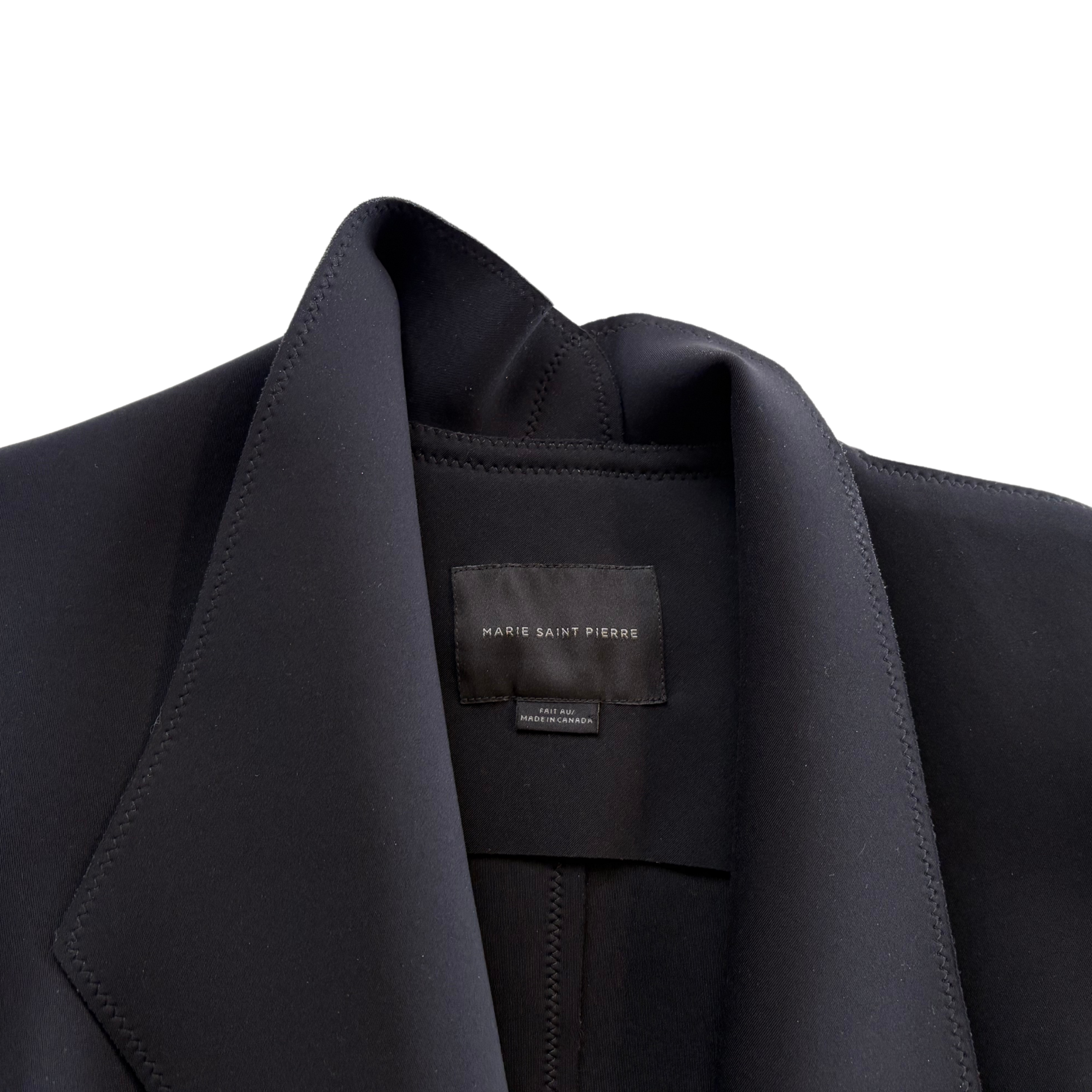 Marie Saint Pierre cropped blazer in black neoprene with a fold-over front.