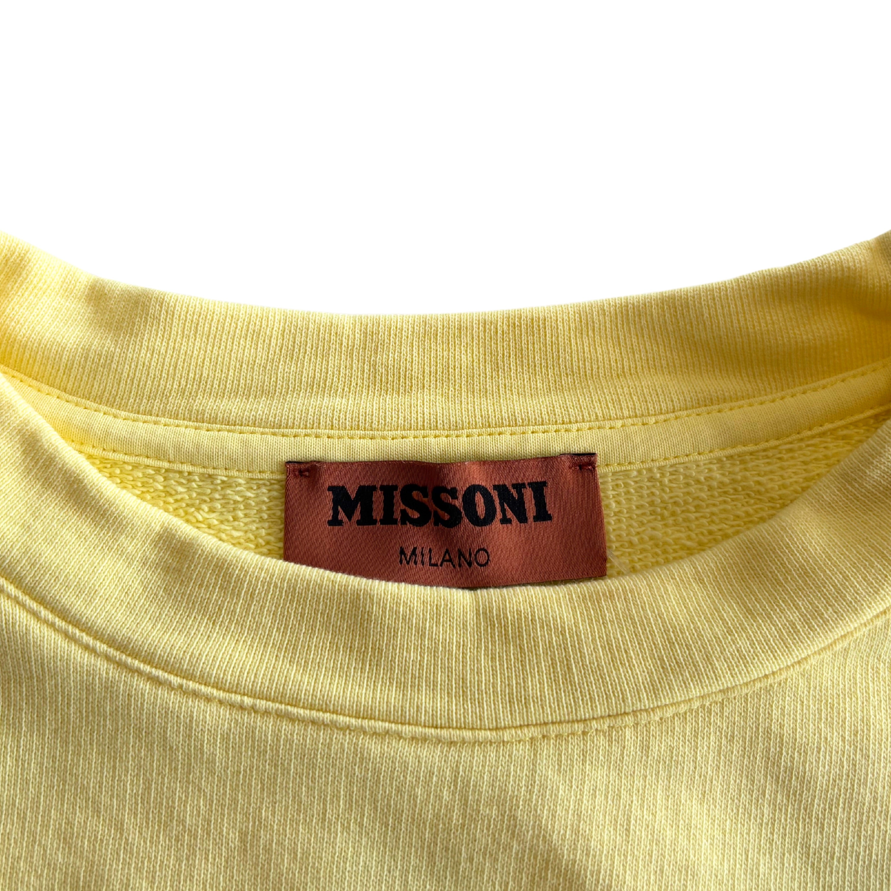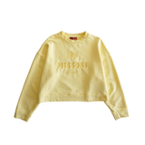 Missoni cropped crewneck sweater in yellow cotton with a large tonal logo embroidery on the chest and a boxy fit.