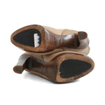 Fair, vintage. Light scratching and scuffing throughout leather, wear to toes, scratching in wooden heel and sole.