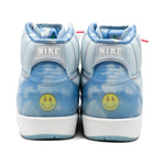 Nike Air Jordan x J Balvin '2 Retro SP' high top sneakers in 'celestine blue' colour way with cloud print heel and lining. Features rainbow stitching, suede toe, rip stop side panels, and comes with white, blue and teal laces.