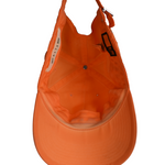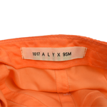Nike x 1017 Alyx 9SM baseball cap in bright orange nylon with a small nike check in silver metal hardware, a black Alyx logo on the side, and an adjustable back with a silver buckle.