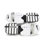Nike x Stussy 'Air Zoom Spiridon Kukini' low-top sneakers in white, black, and habanero red colour-way. Features white rubber caging throughout shoe, black rubber heel detail, red inner lining, and slip-on design.