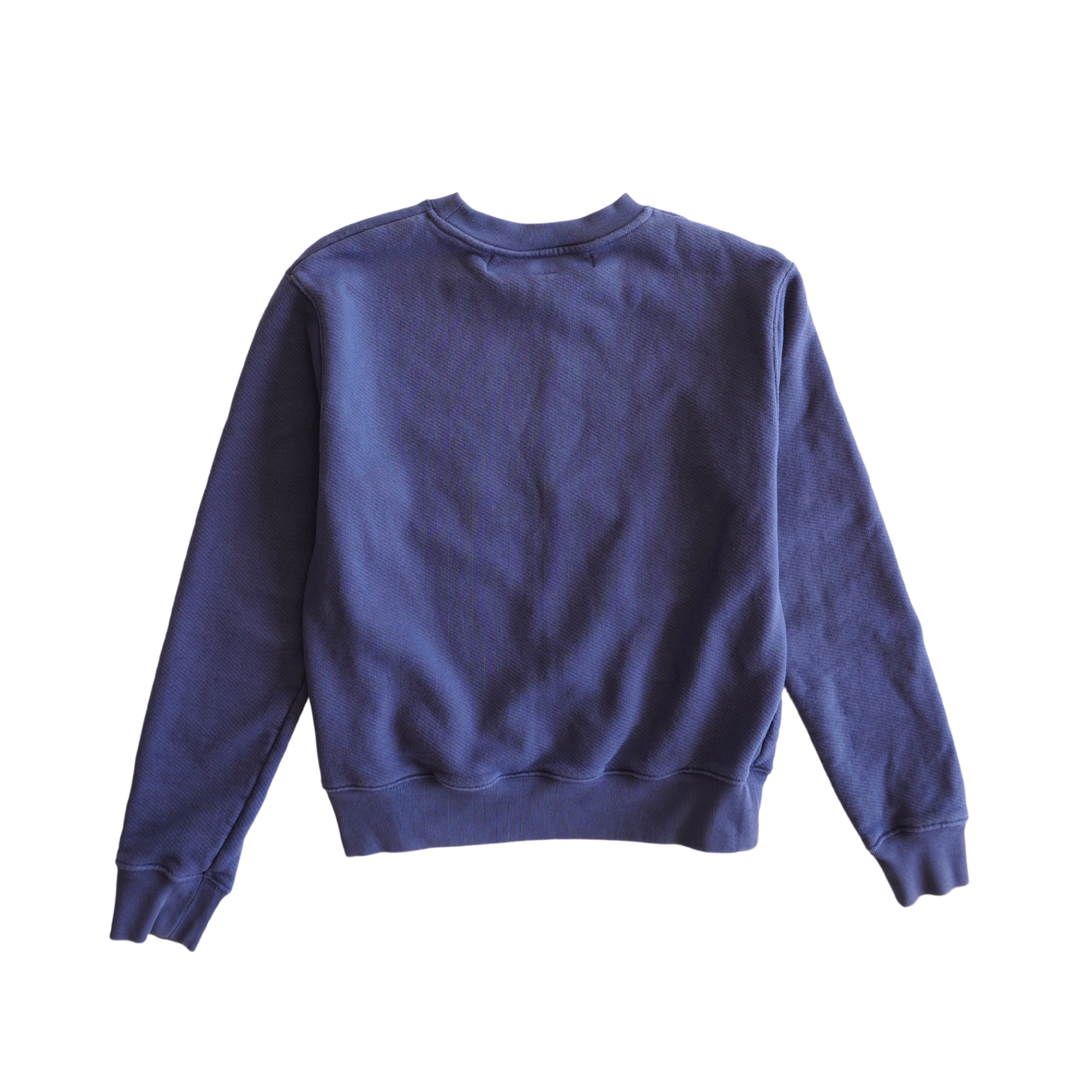Great, Small staining on front and sleeves, Some fading to ribbing.