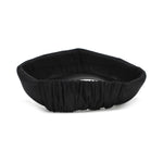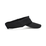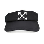 Off-White visor hat in black nylon with an elasticated back and white embroidered arrows on the cap.