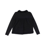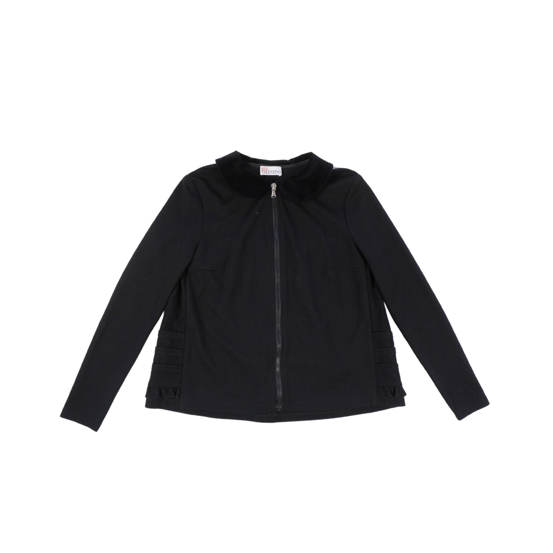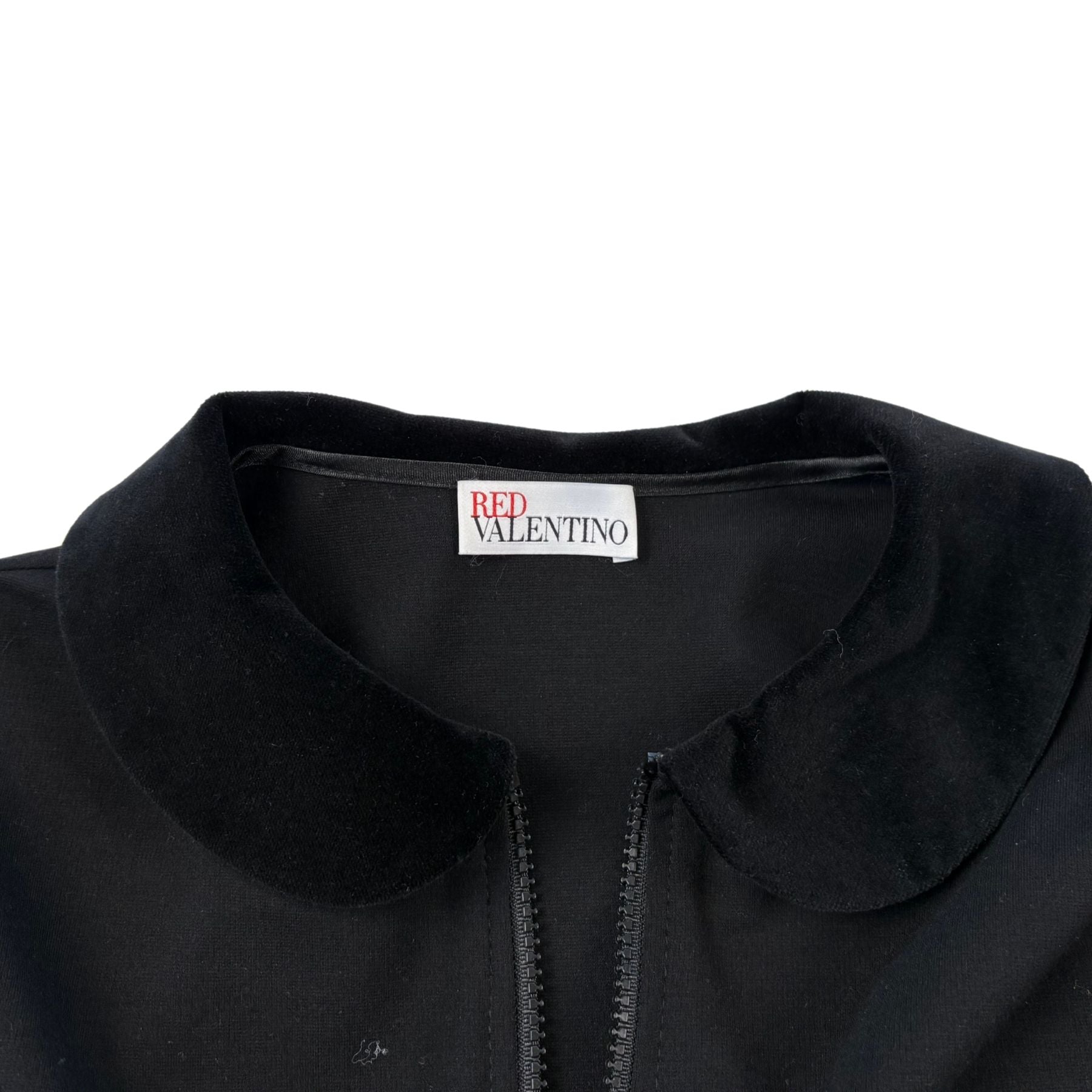 Red Valentino zip-up sweater in a black cotton-viscose blend with a lace back panel and a rounded velvet collar.