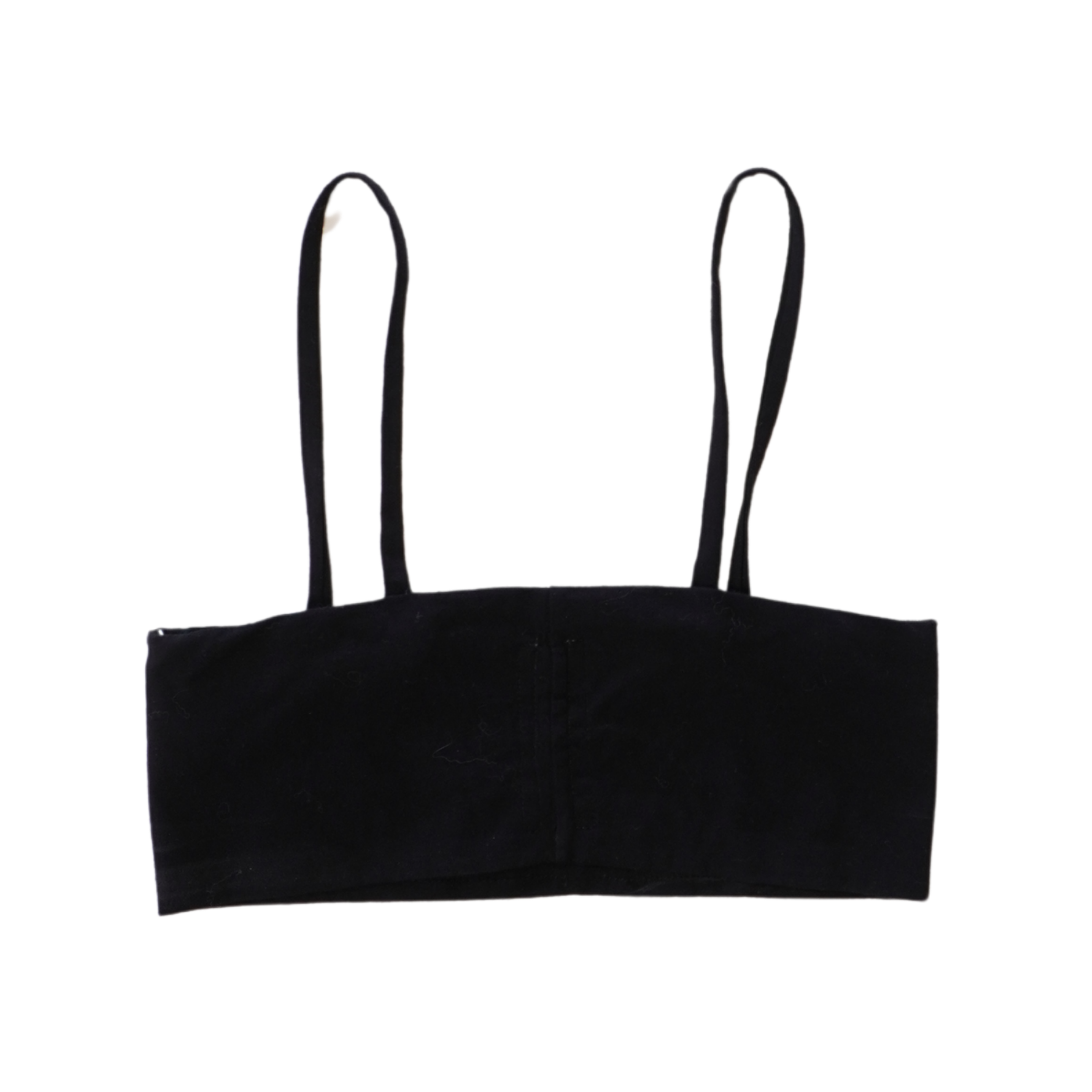 Rick Owens cropped tank top in black cotton with spaghetti straps and a back stitch logo.