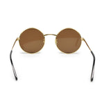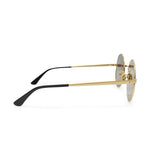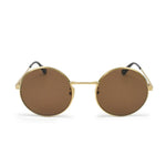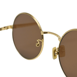 Saint Laurent sunglasses in gold metal hardware with rounded brown lenses and black plastic arms.
