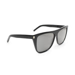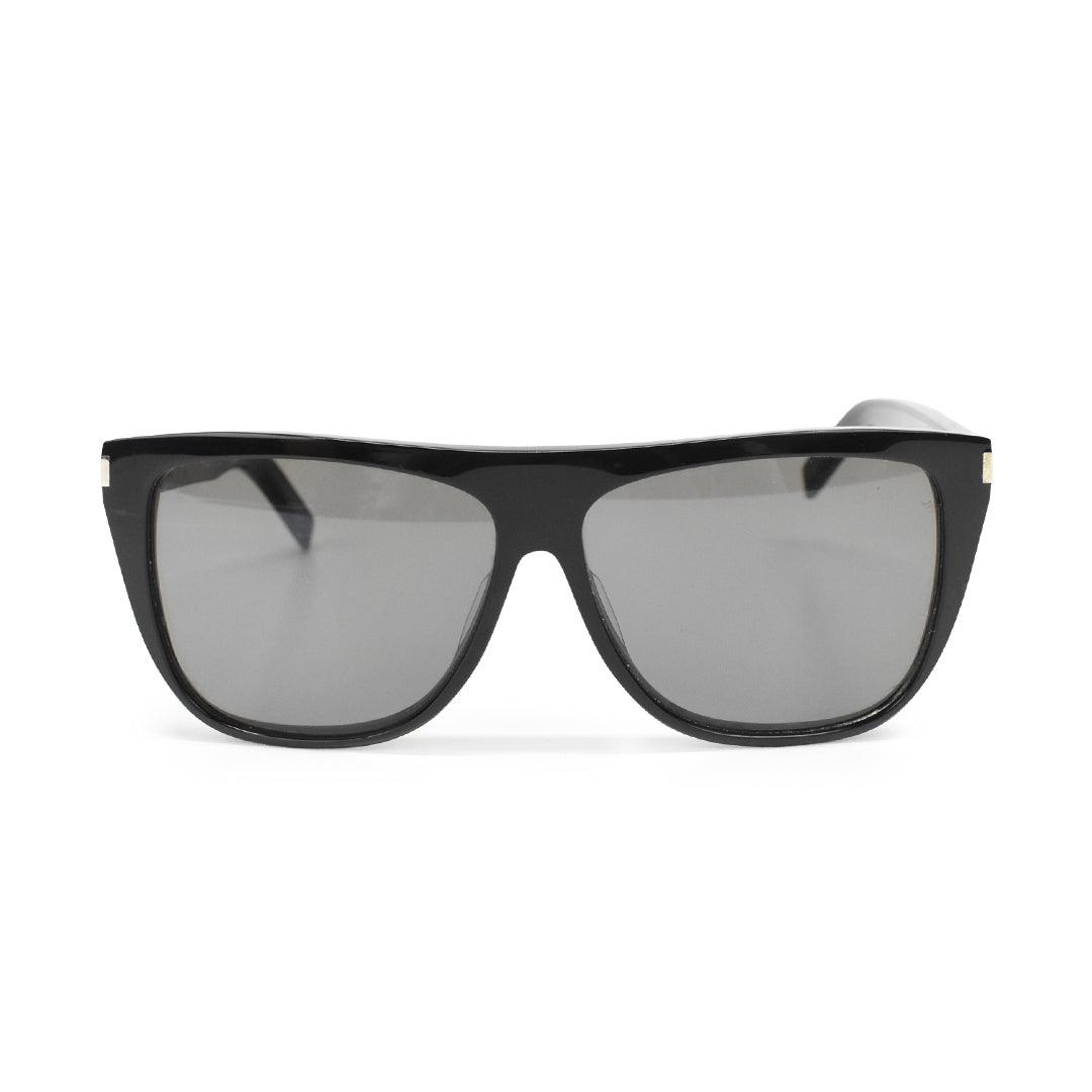 Saint Laurent oversized flat top sunglasses in black acetate with silver hardware on the corners and engraved logo on the arms.