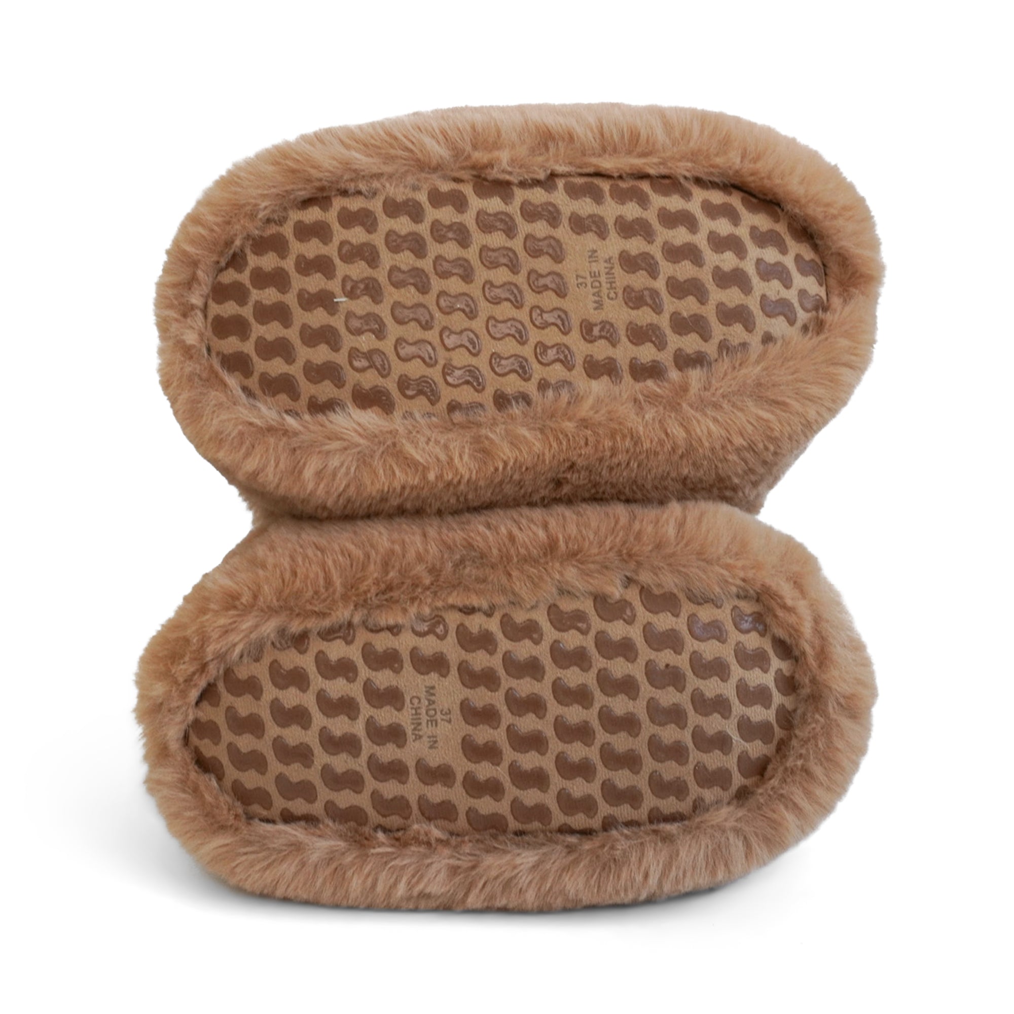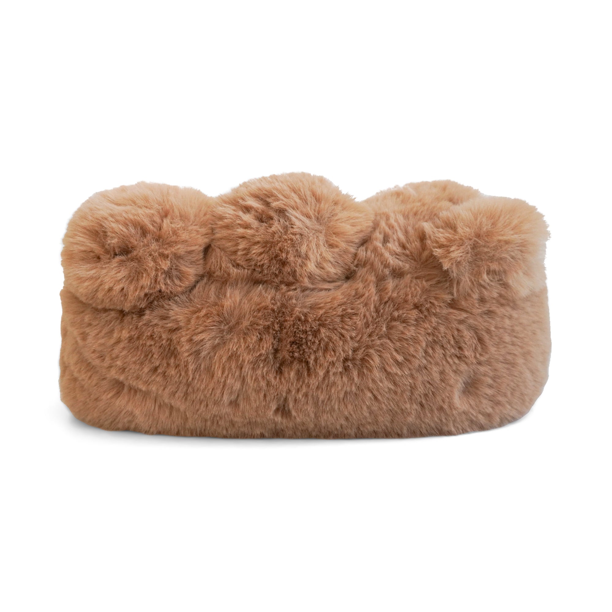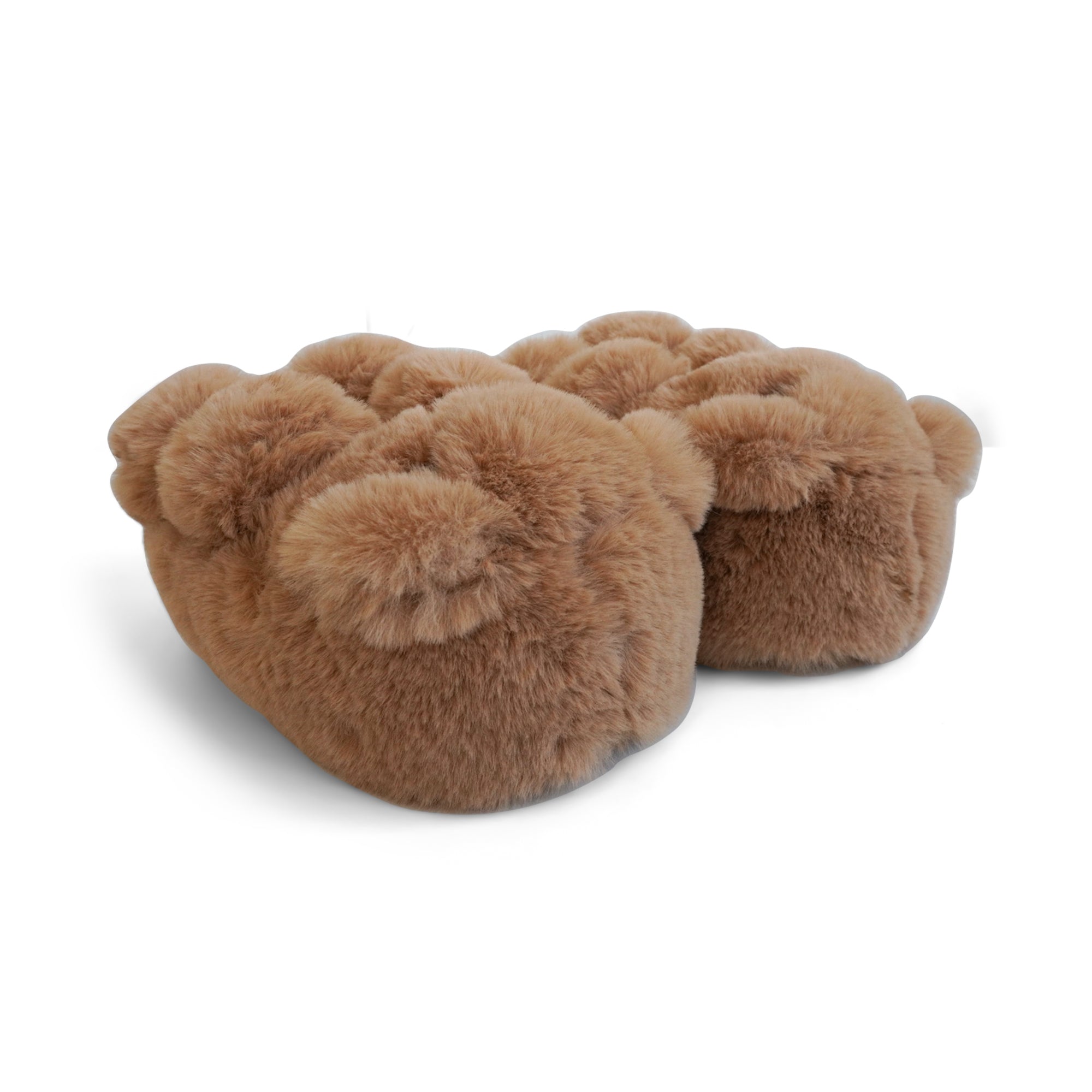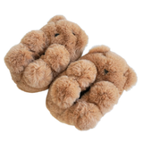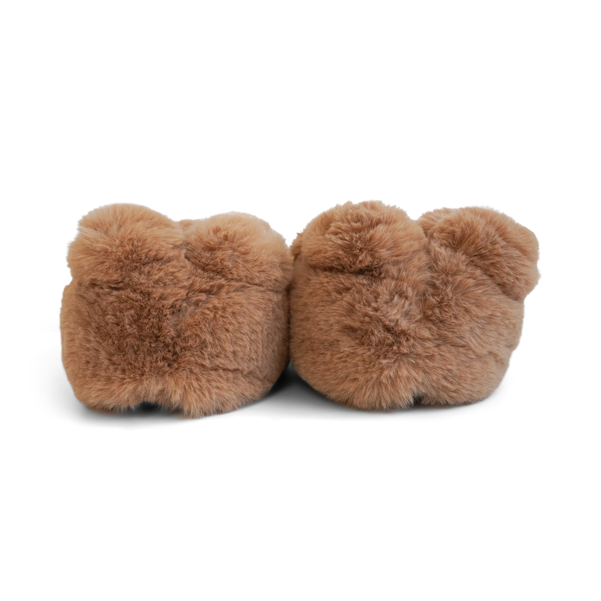 Skims 'Teddy' slippers in brown faux fur with black nose and eye details and a logo monogram grip sole.