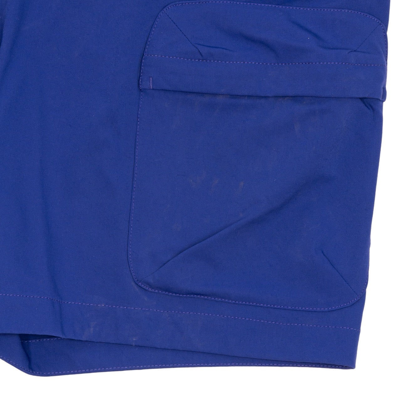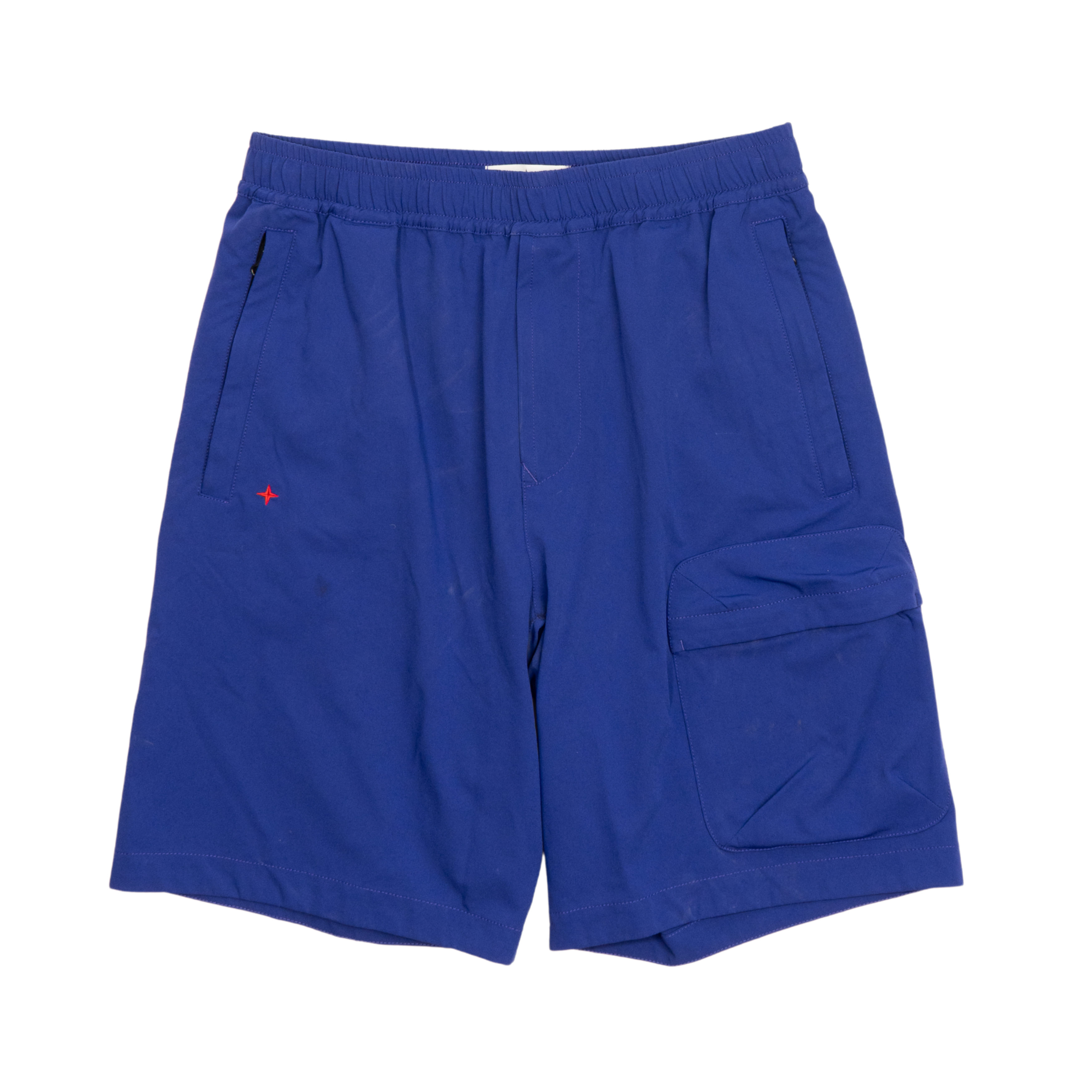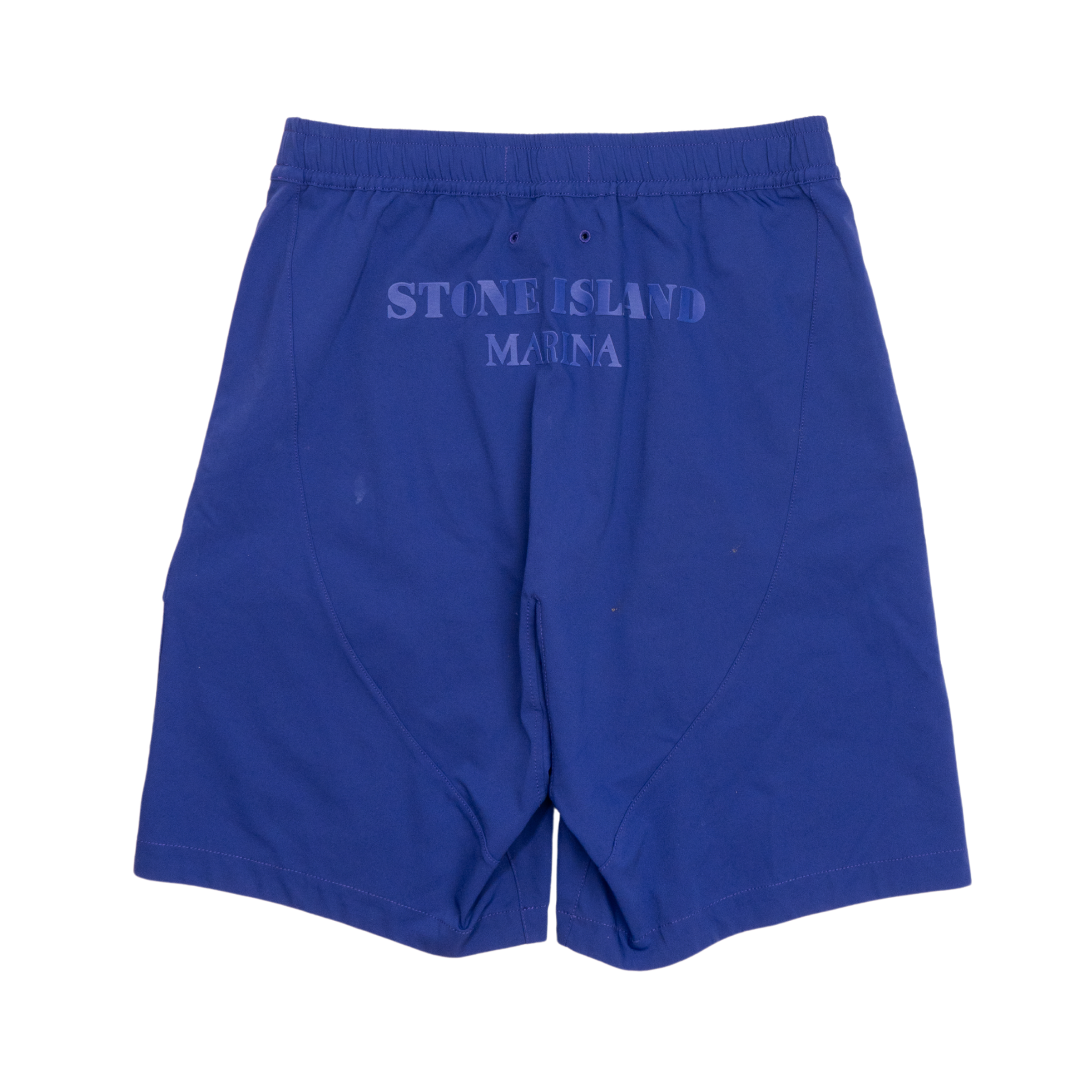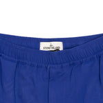 Stone Island 'Bermuda Marina' bright blue shorts with elastic waistband and inner drawstring, two front zip pockets, single flap pocket, zipper fly and red embroidered logo on the front. Featuring large letter logo on the back in tonal blue rubber with curved seam detail.