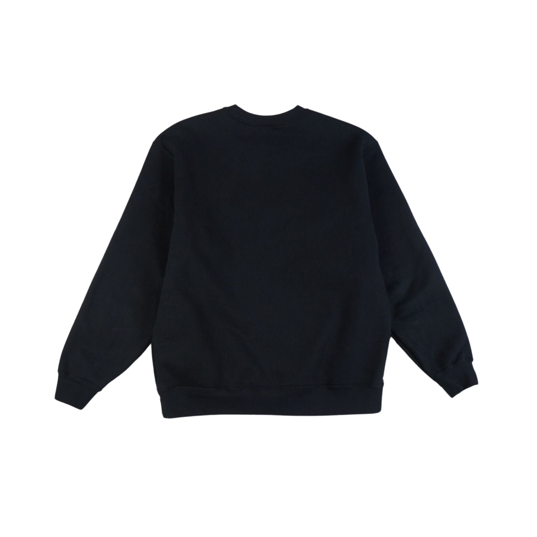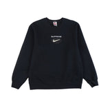 Supreme x Nike crewneck sweatshirt in black cotton with white embroidered logo and a checkmark patch.