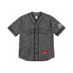 Supreme baseball jersey in black and white boucle with jumbo logo on the chest and black piping.