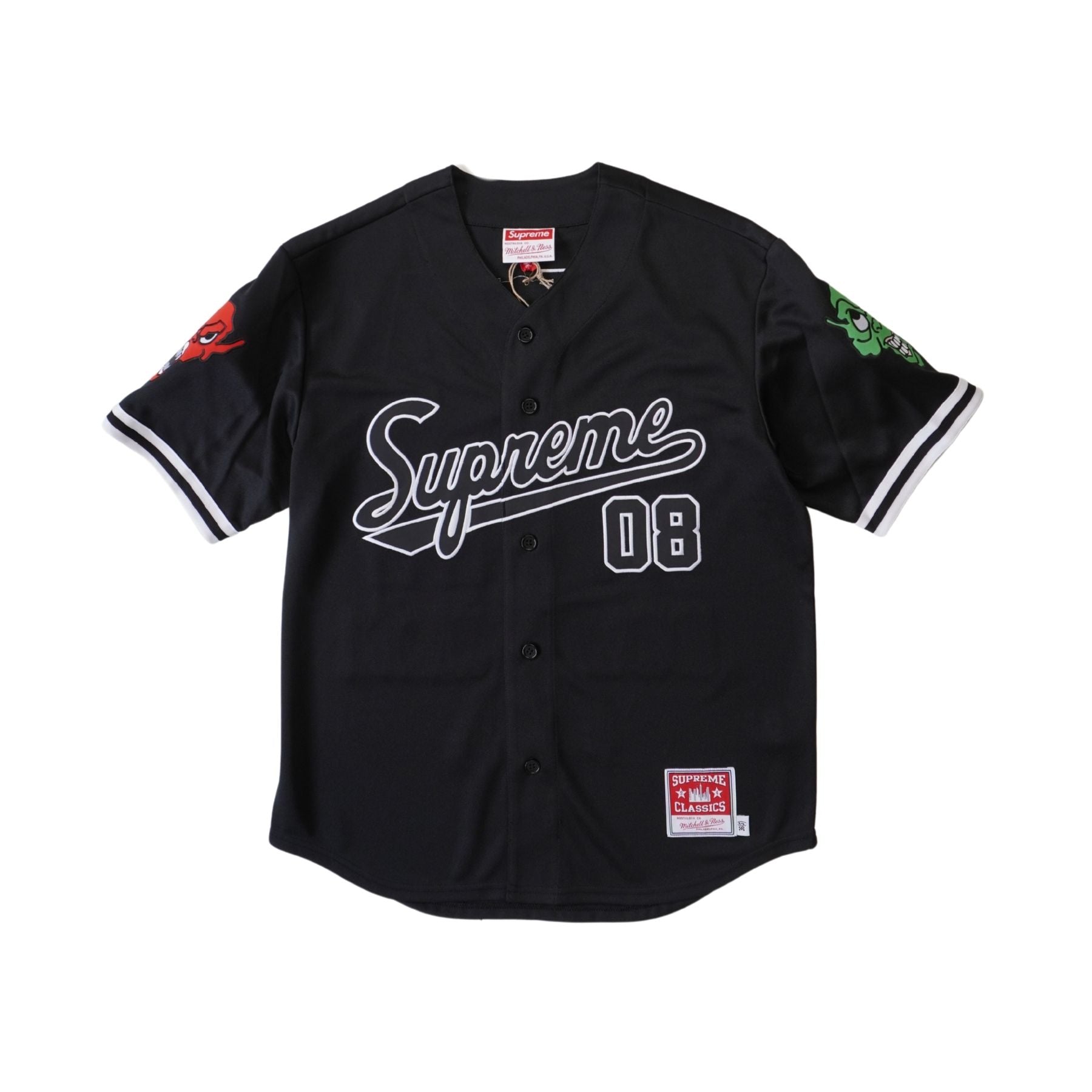 Supreme 'Downtown Hell' jersey top in black with a a large black and white logo across the front, embroidered goblin graphics, and a large 'Downtown Hell' graphic on the back.