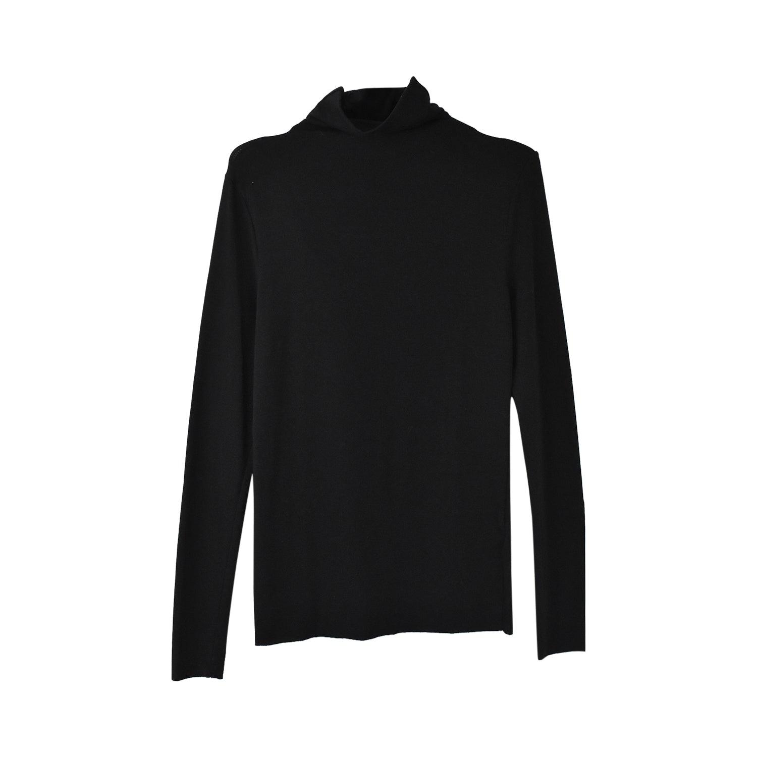Thom Krom Turtleneck Sweater in black cotton blend with a raw hem.