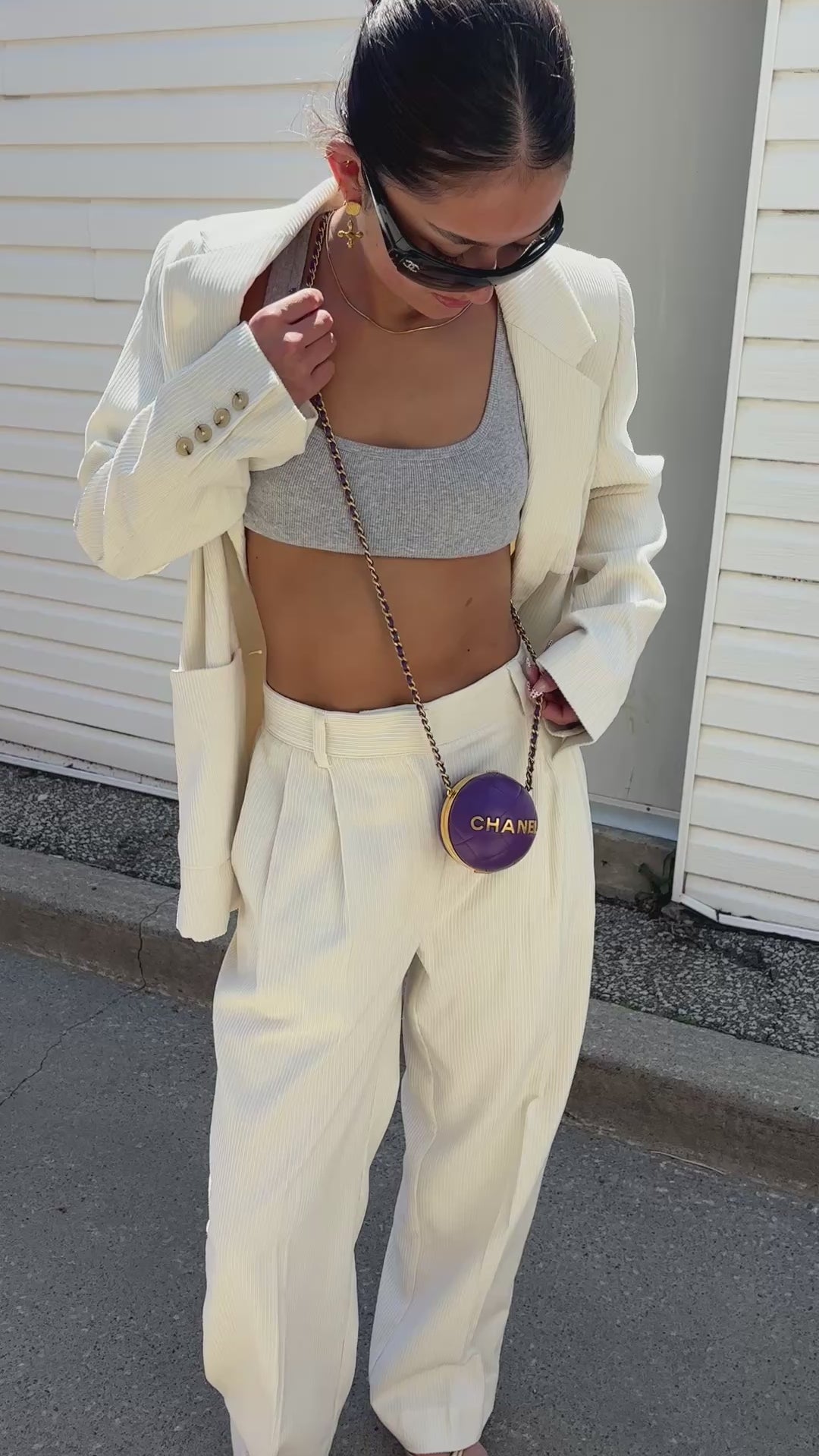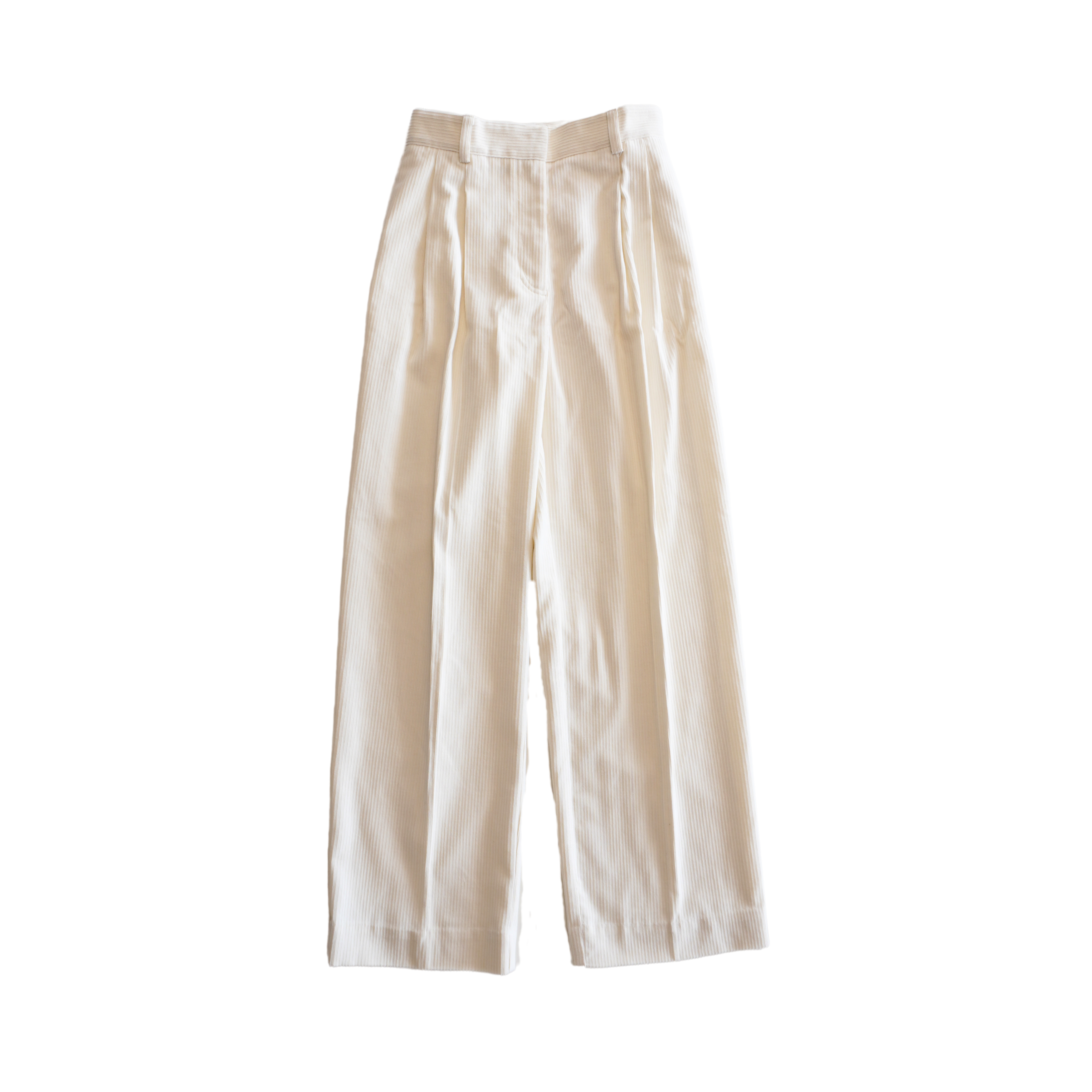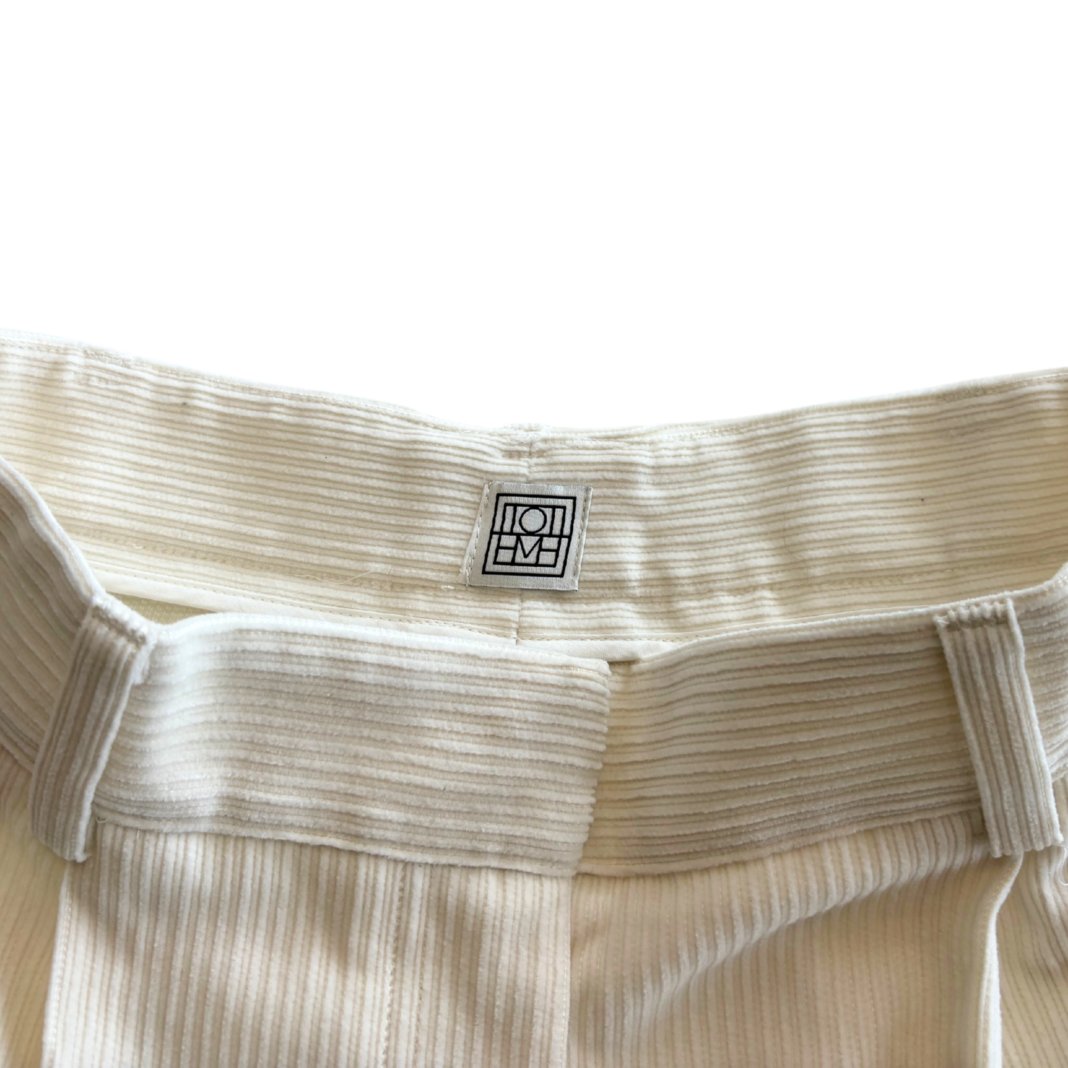 Toteme 'Silk Cotton Cord' wide pleated trousers in cream corduroy.