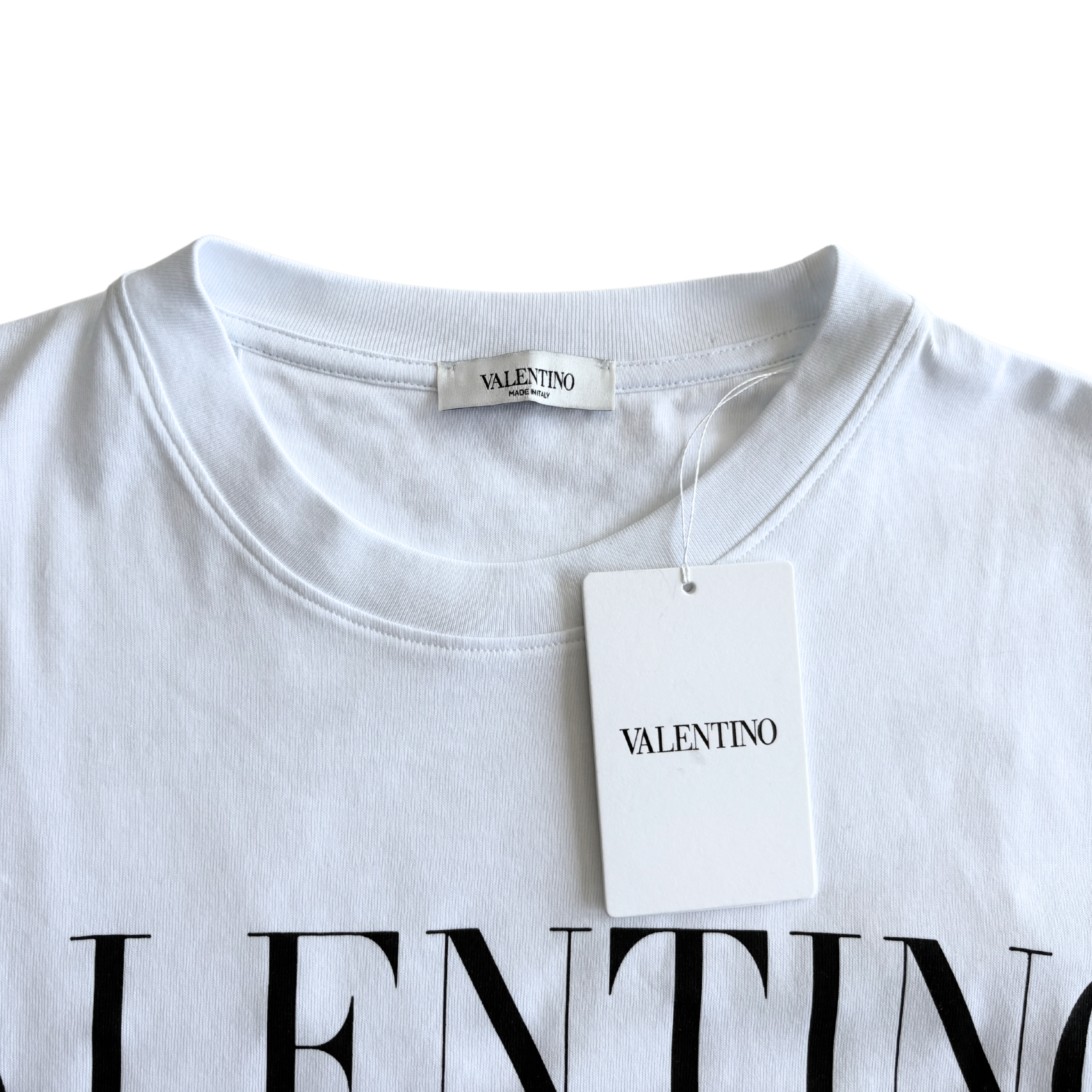 Valentino t-shirt in white cotton with a black logo across the chest.