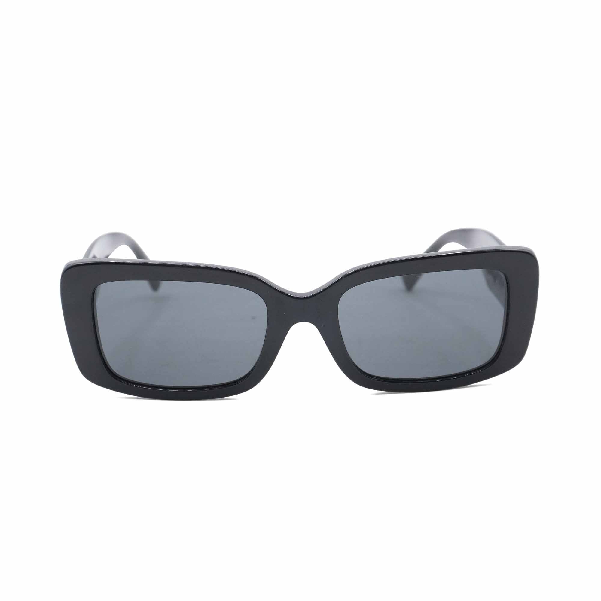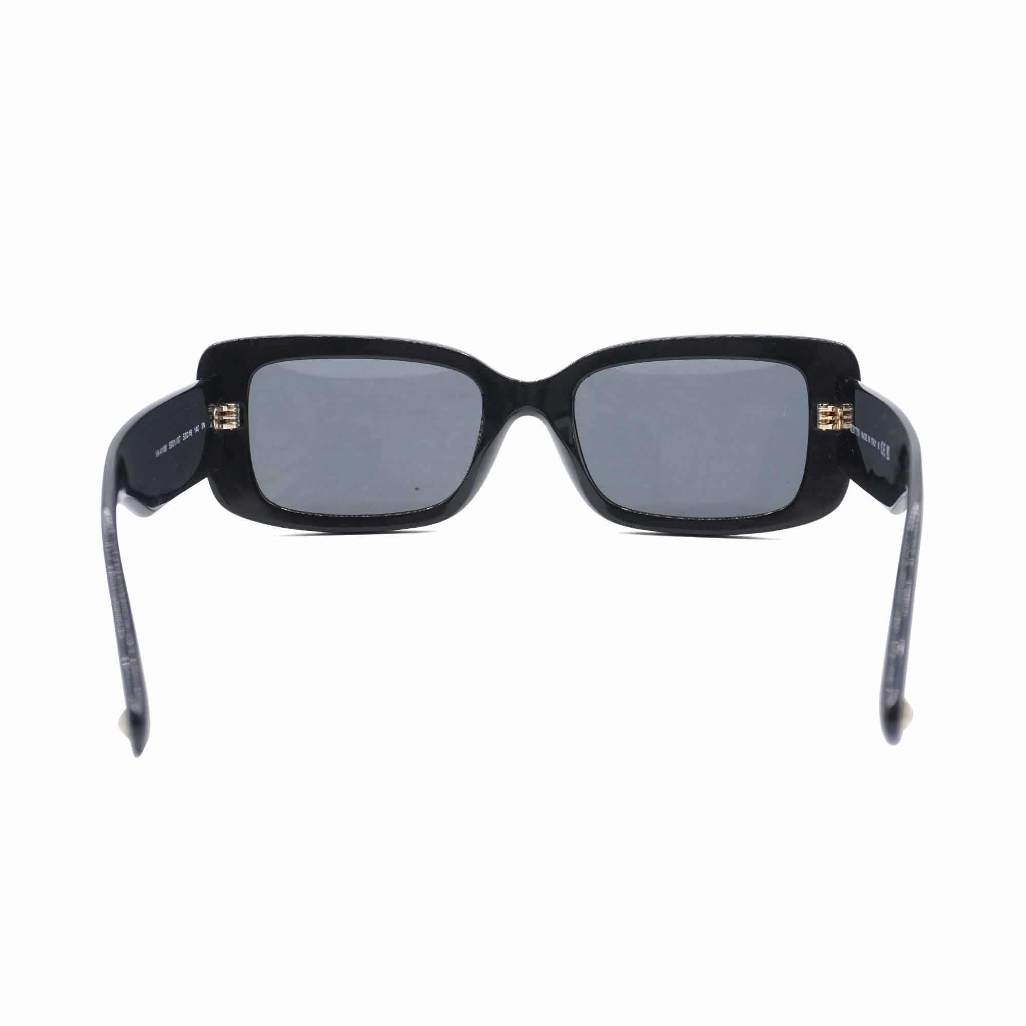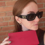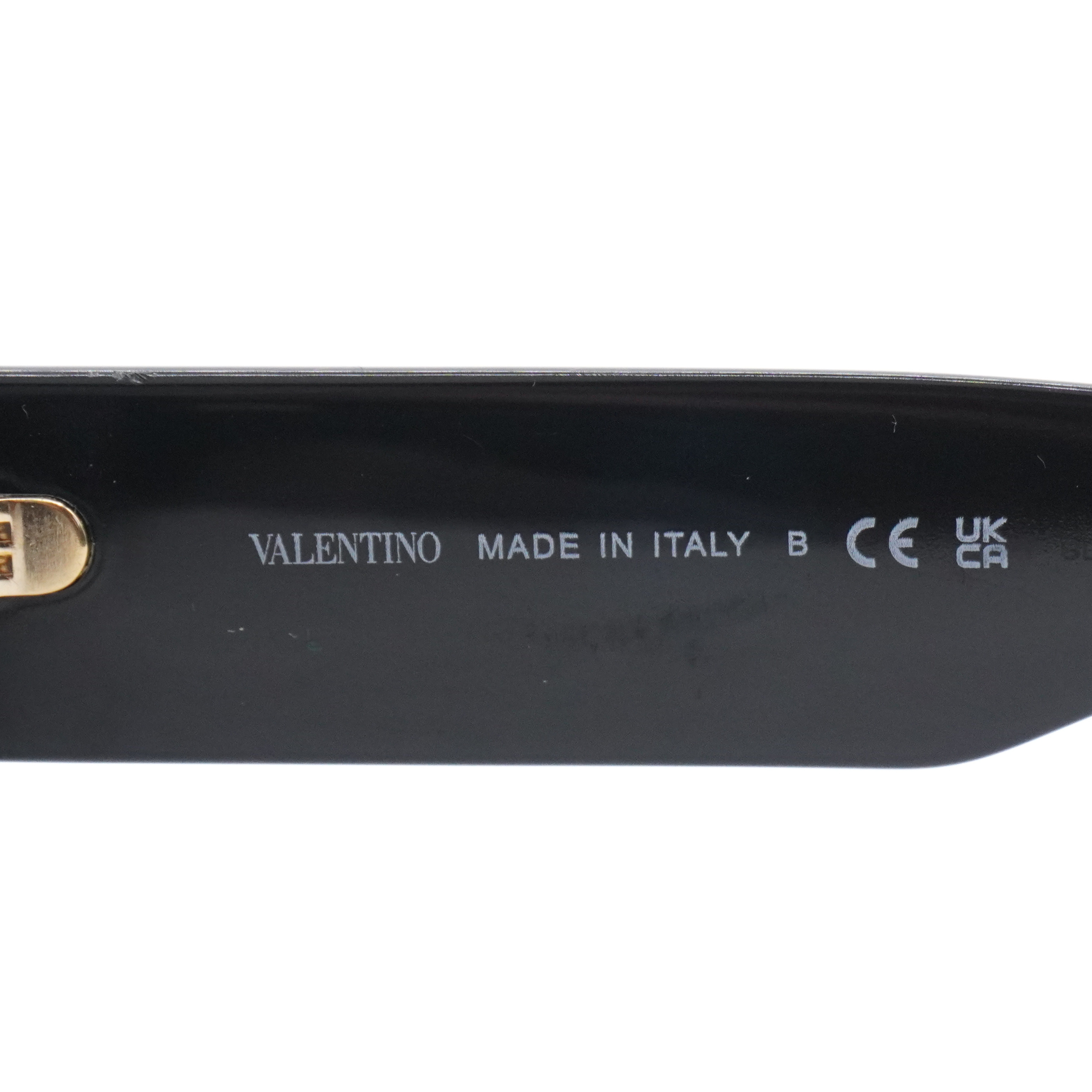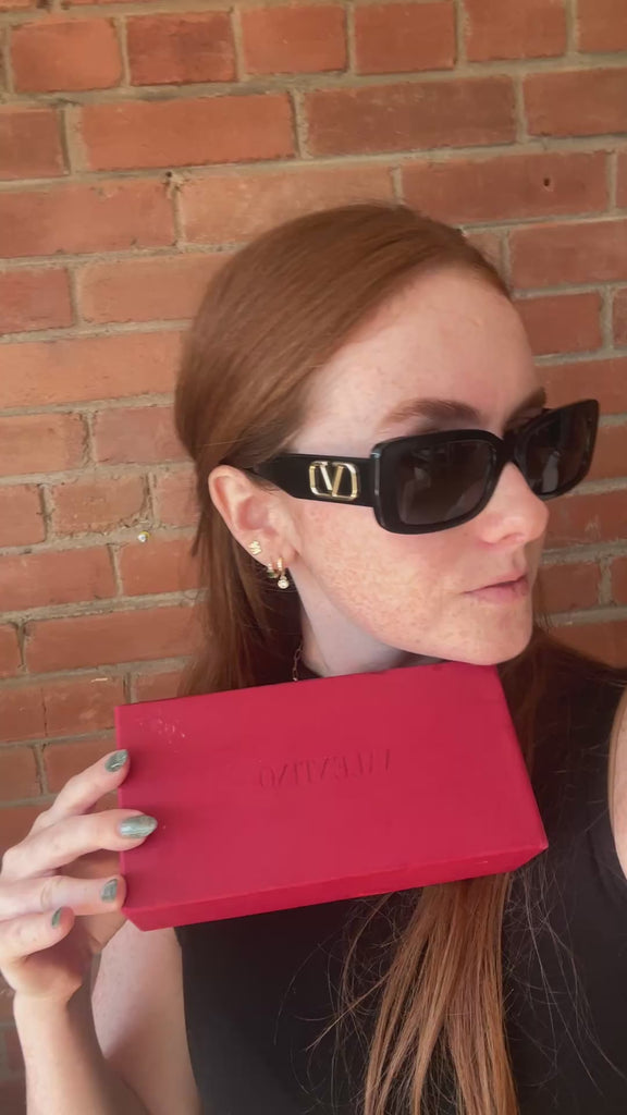 Valentino 'V-Logo' sunglasses in black acetate with a rounded square lens and a large gold 'V' emblem on the arms.
