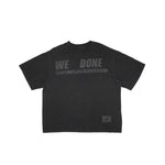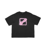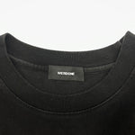 We11done t-shirt in black cotton with a pink logo graphic on the chest and black text on the back.