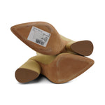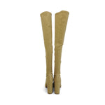 Yeezy 'Season 4 Stretch Canvas' thigh-high boots in khaki beige canvas with a rounded block heel and a pointed toe.